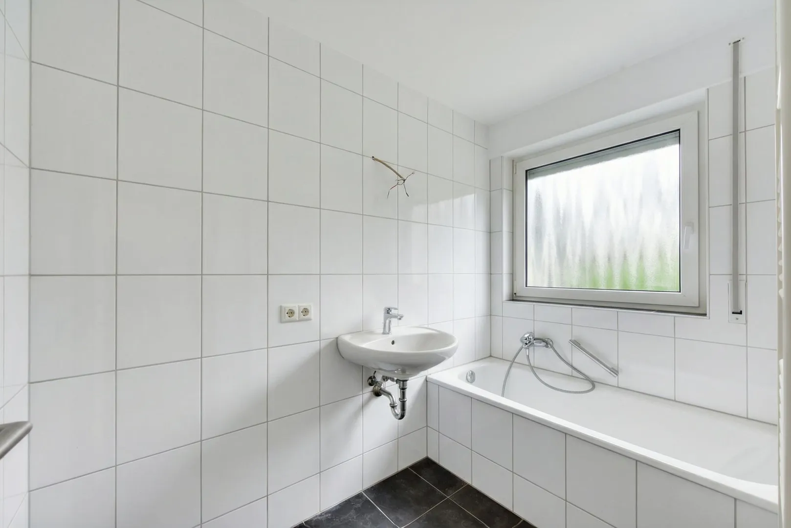 Das raumhoch geflieste Tageslicht-Badezimmer wurde 2008 modernisiert und verfügt über ein Fenster, eine Badewanne, einen Handtuch-Heizkörper sowie einen neuen Spiegel-Schrank. Das separate WC mit Fenster ist gefliest und wurde ebenfalls 2008 modernisiert.