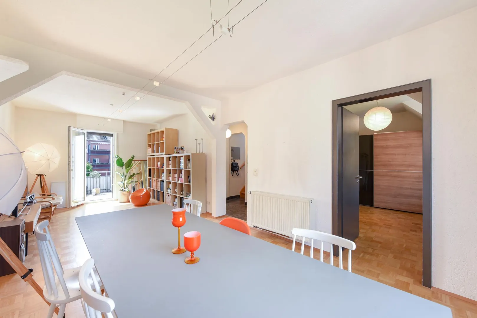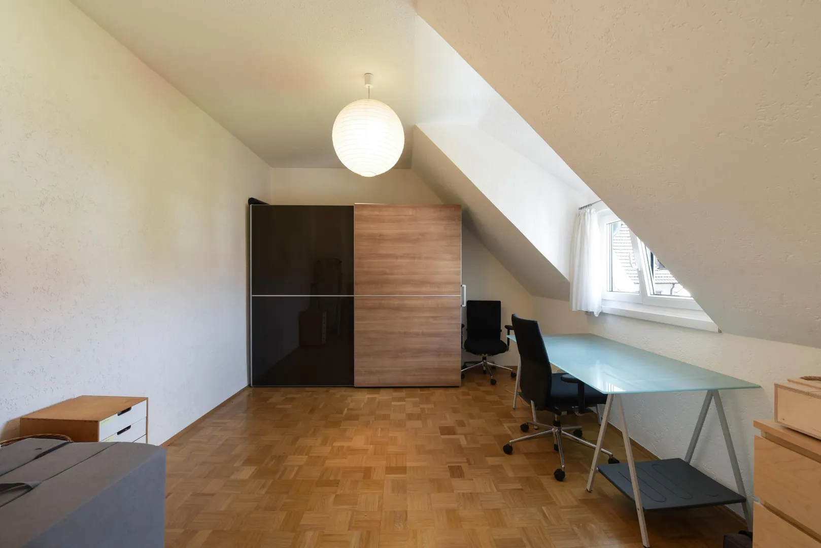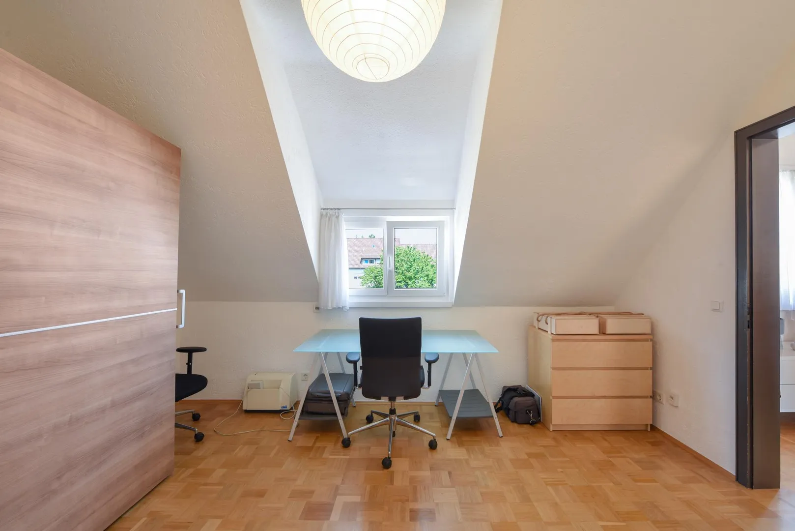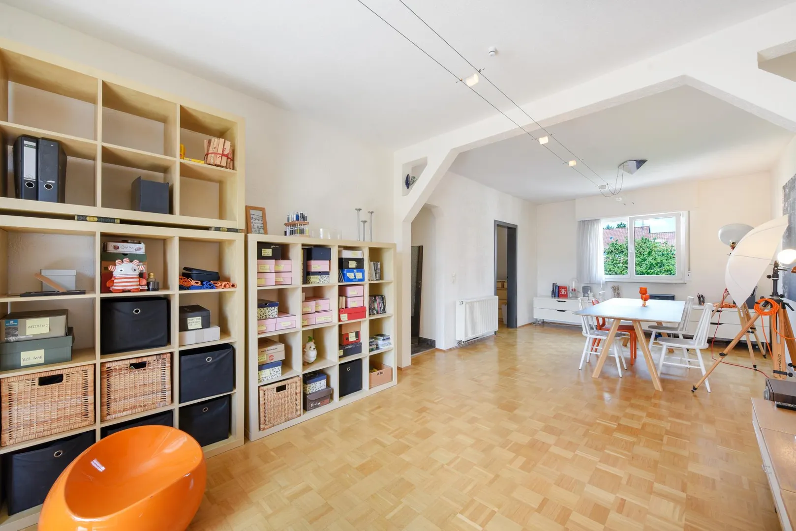 - Eiche-Parkettboden in Wohn- und Arbeitszimmer