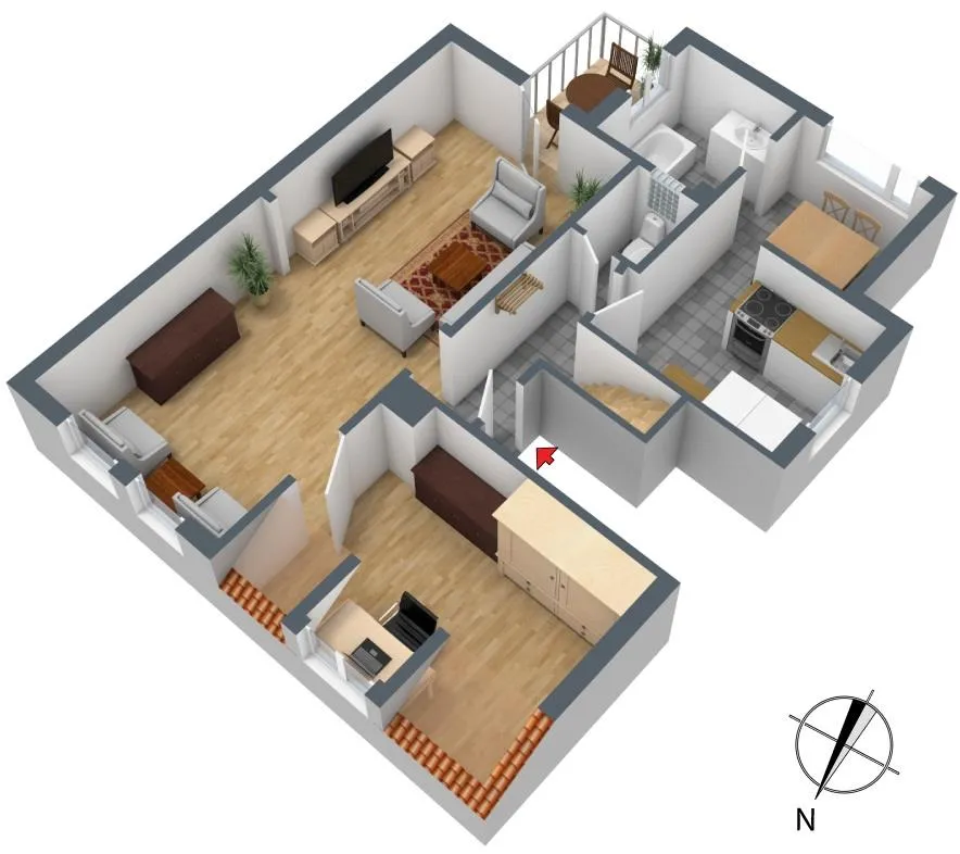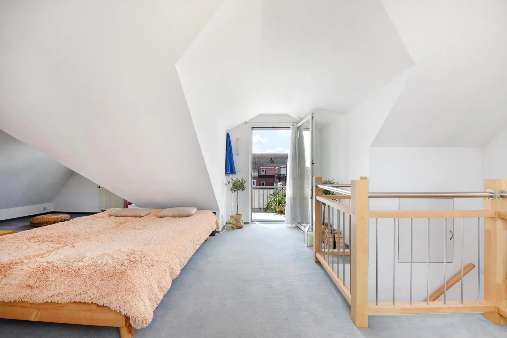 Diese individuelle, sonnige und helle 3 ½-Zimmer-Maisonette-Etagen-Wohnung mit Balkon und Süd-Dach-Terrasse befindet sich im 2. Obergeschoss und Dachgeschoss.