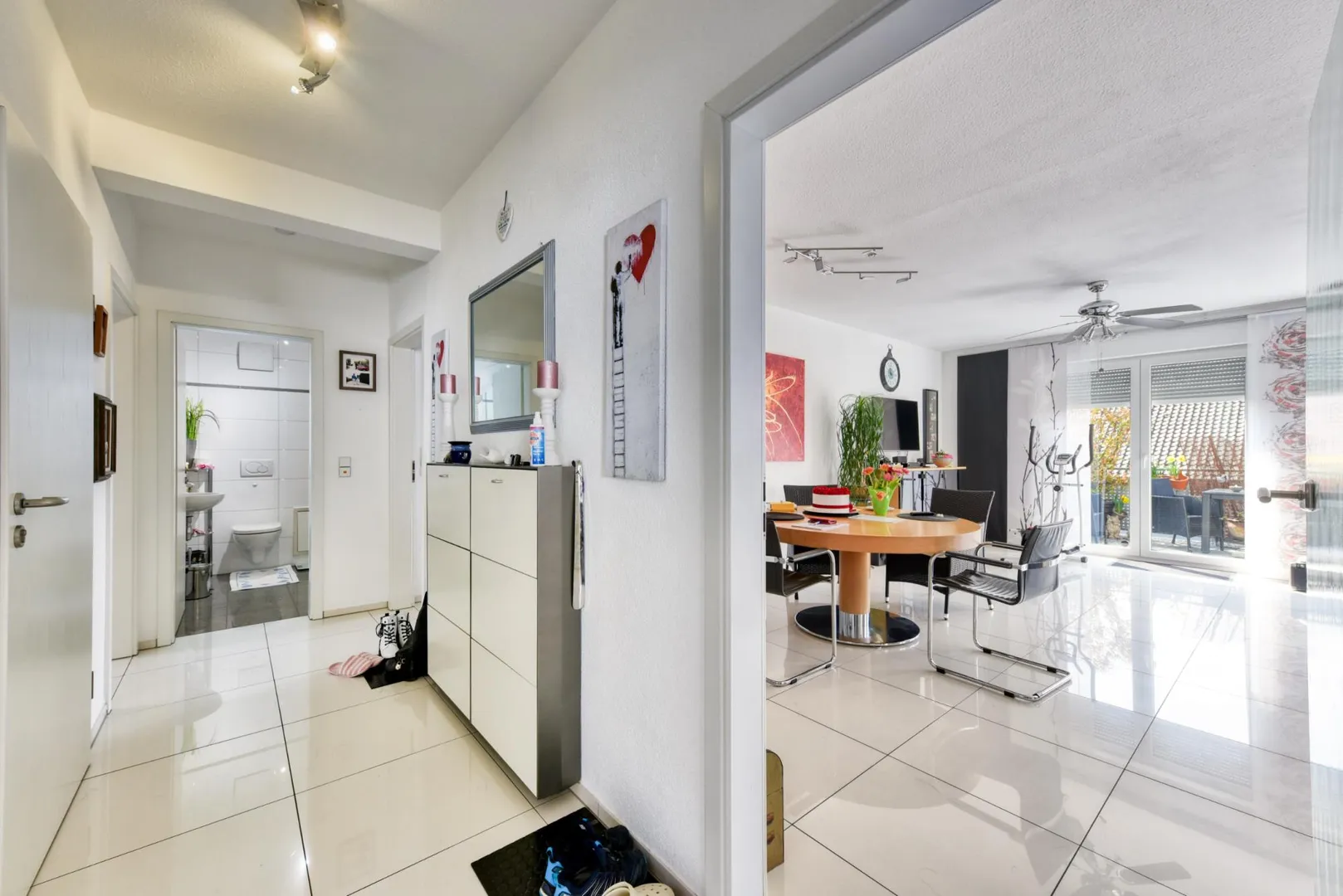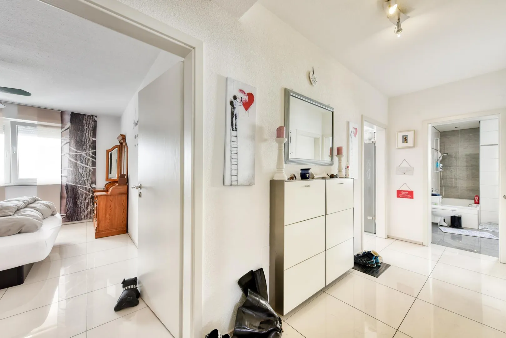 Die Wohnung ist hell und sonnig. Die Raumhöhen betragen ca. 2,55 Meter. Die Wohnung ist nach Süden und Westen ausgerichtet. Die Böden im Flur und in den Zimmern sind mit hochwertigen, weißen Fliesenböden ausgestattet. Die Wände sind weiß gestrichen.