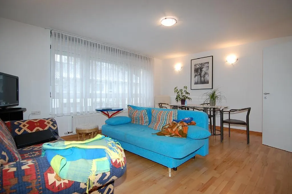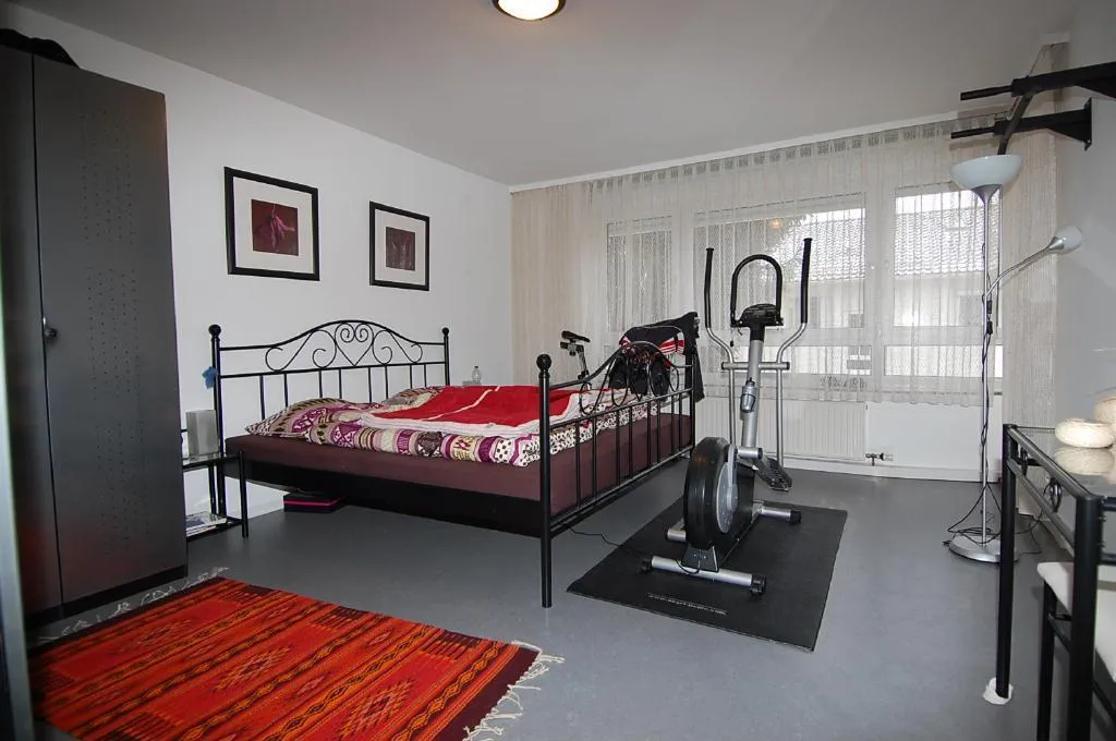 In der Wohnung befindet sich deshalb ein Durchgangszimmer und die Wohnung verfügt über 2 Eingänge.