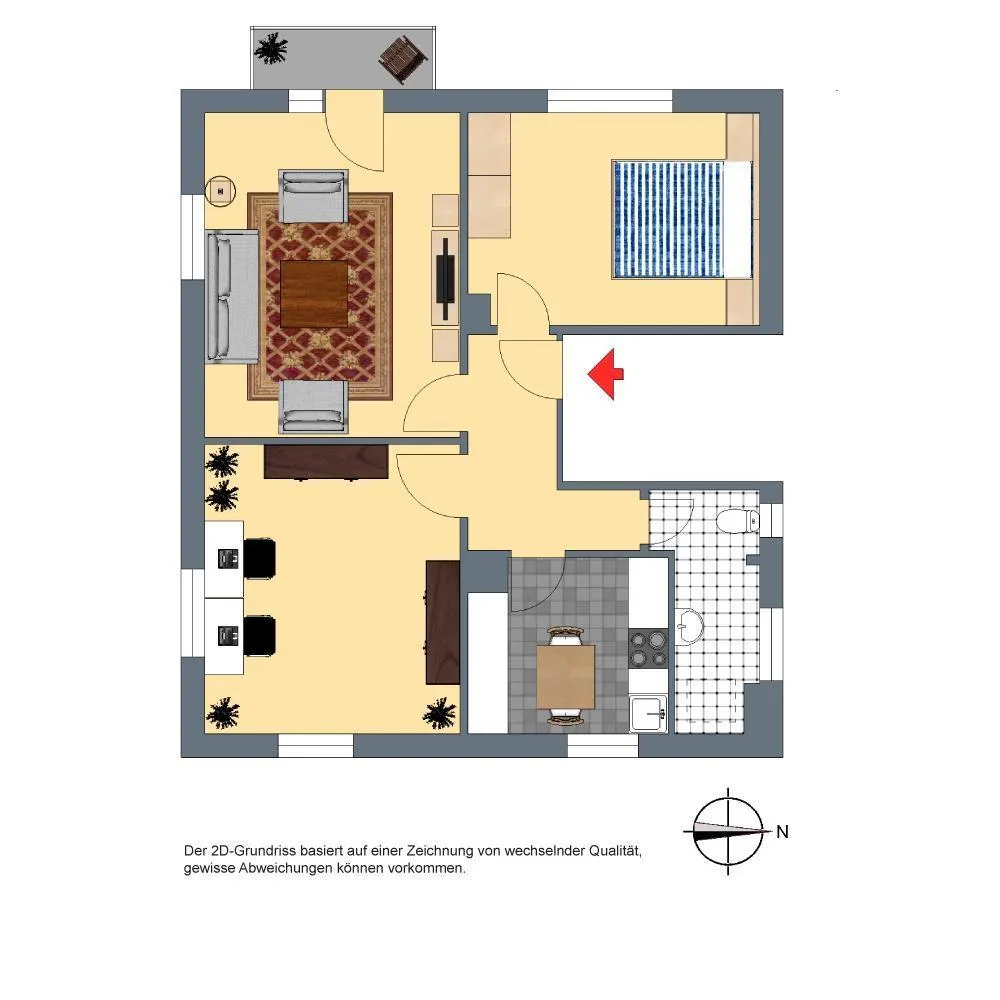 Der Grundriss der Wohnung ist sehr gut. Alle Räume sind vom Flur aus erreichbar. Das Tageslichtbadezimmer verfügt über ein Fenster. Die Wohnung verfügt über einen nach westen ausgerichteten Balkon.