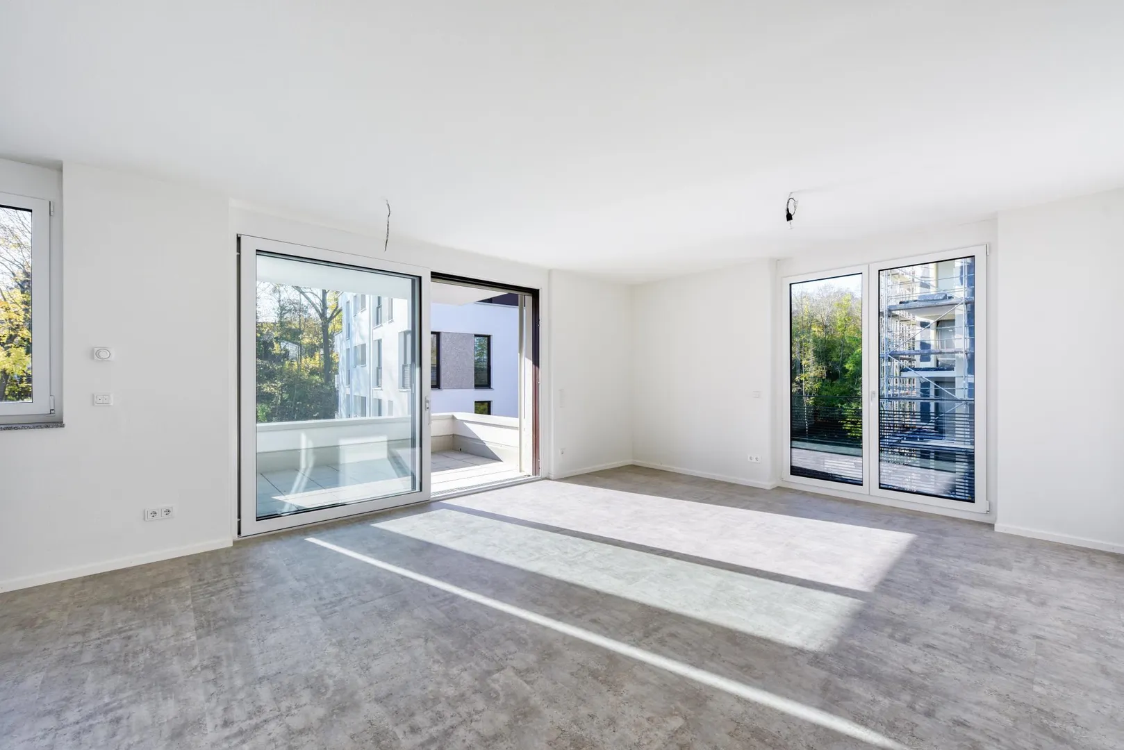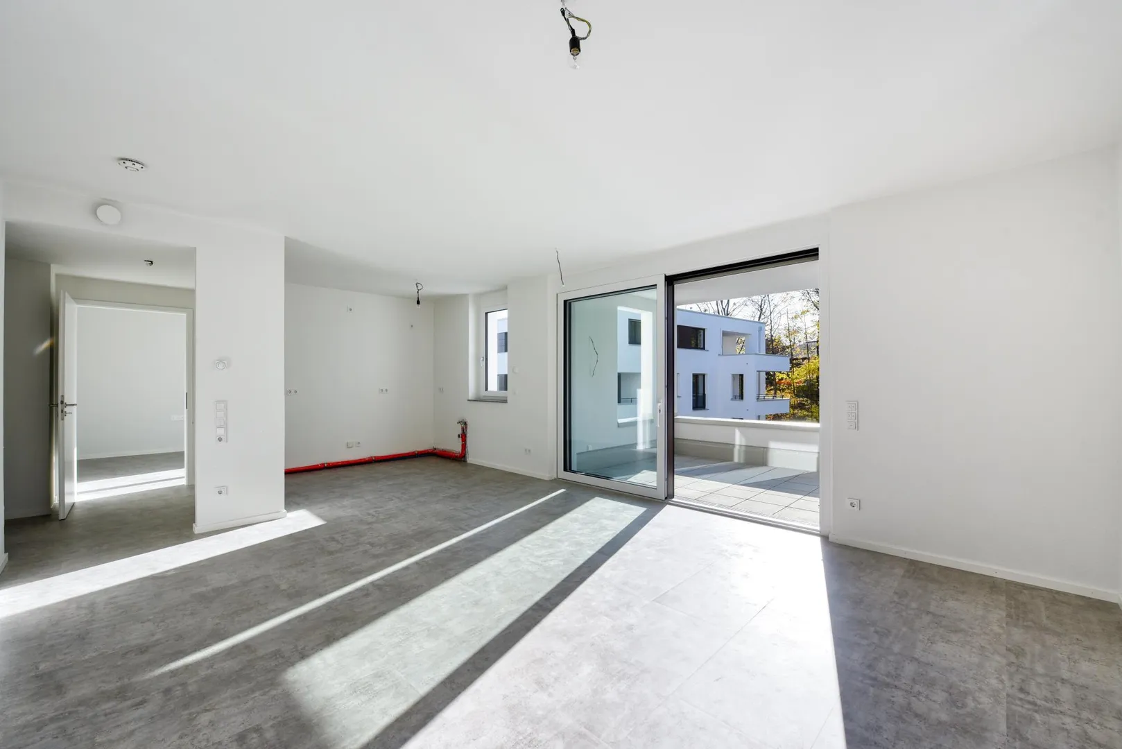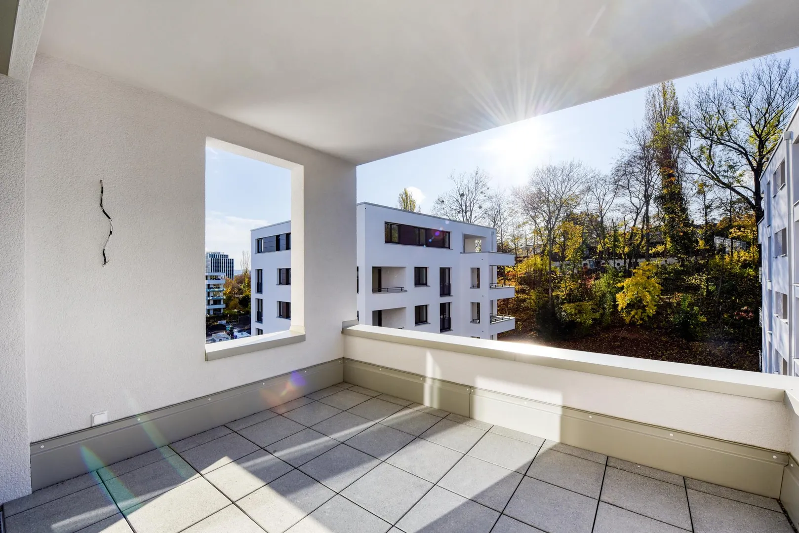 Die Zimmer, die Küche sowie der Balkon sind nach Süden ausgerichtet. Der ca. 10 m² große und überdachte Balkon ist über das Wohnzimmer begehbar.