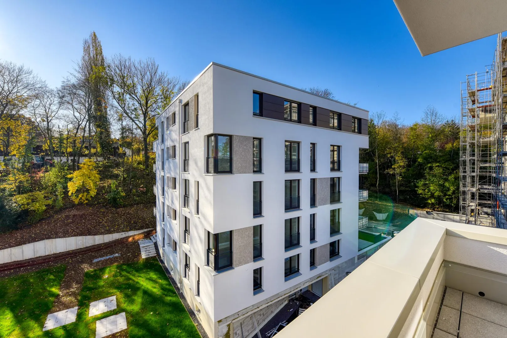Das Haus wurde zum Erstbezug 2019/2020, freistehend, massiv, 4-geschossig, komplett unterkellert, mit Tiefgarage und mit Flachdach erstellt.