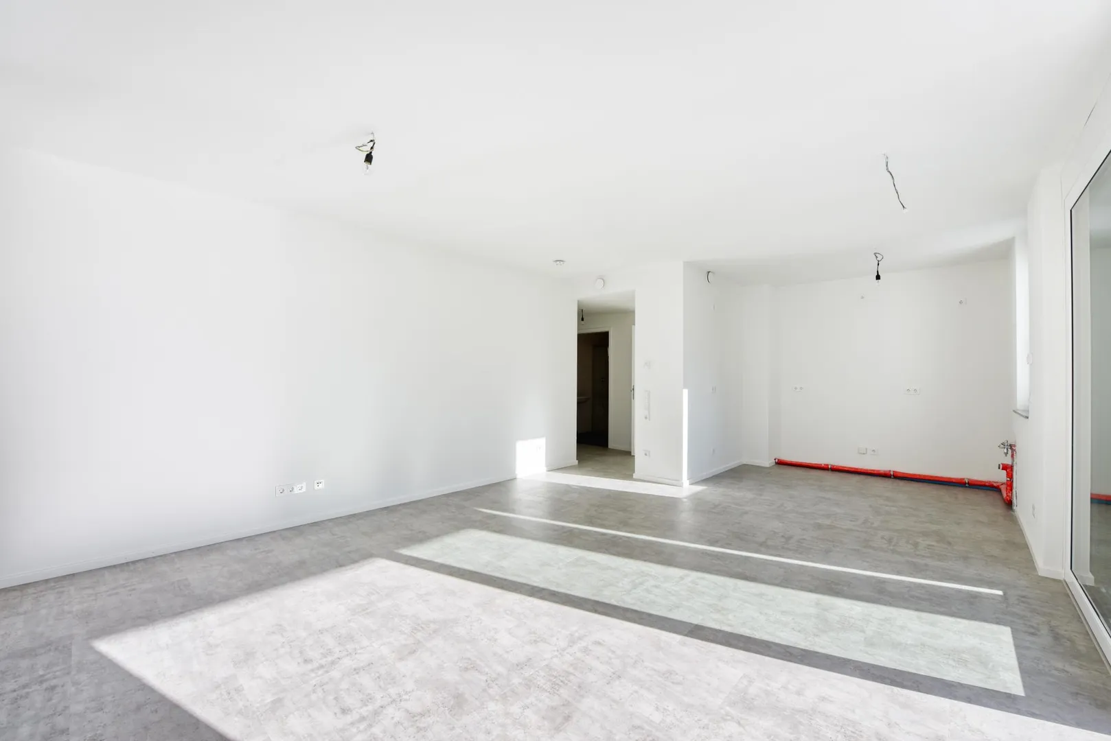Der Grundriss ist gut. Der Wohnbereich ist zum Flurbereich und zur Küche offen gestaltet und verfügt über keine Zimmertür.