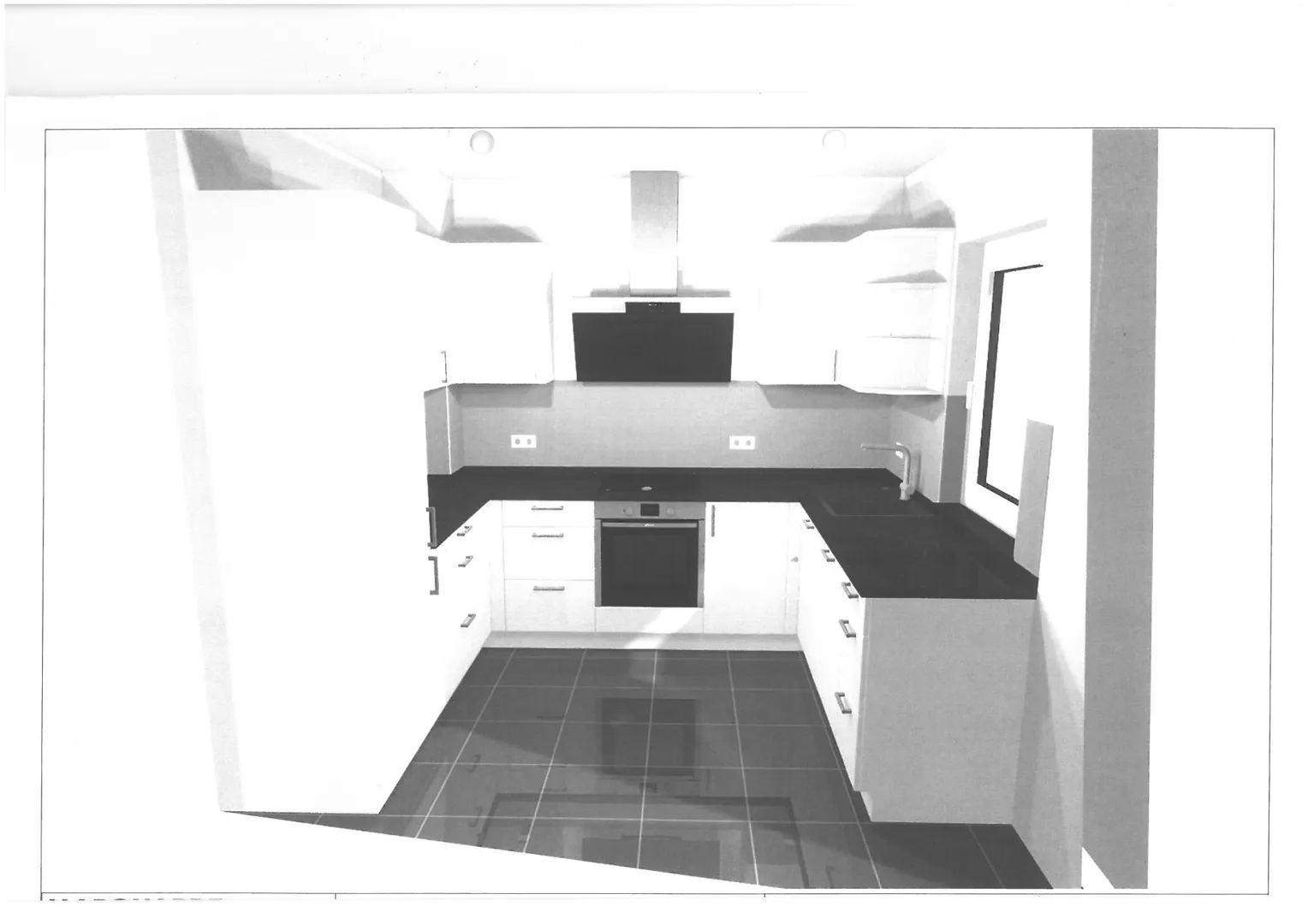 Die Küche verfügt über eine hochwertige Einbauküche. Die Einbauküche ist ausgestattet mit einem Kühlschrank und Gefrierschrank, einer Spülmaschine, einem Herd mit Backofen, einer Dunstabzugshaube sowie Ober- und Unterschränken.