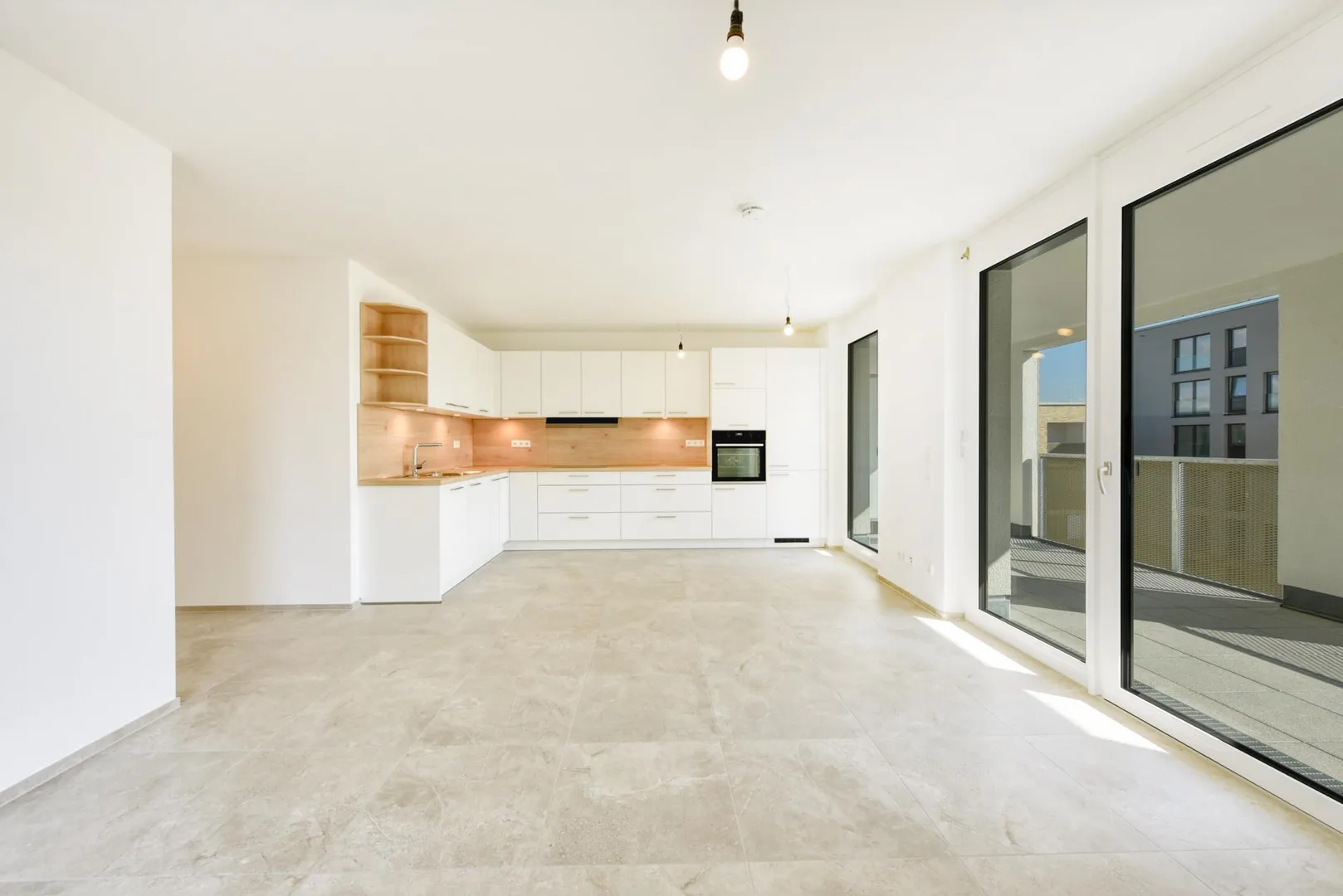 Diese hochwertig ausgestattete 4-Zimmer-NEUBAU-Dachgeschoss-Wohnung befindet sich im 4. Obergeschoss (Dachgeschoss mit Flachdach).