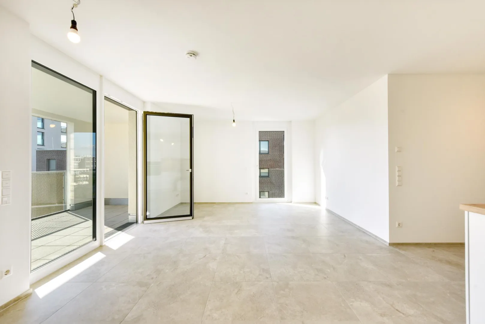 Der offene Wohn-/Ess- und Küchenbereich sowie der Balkon sind nach Süden ausgerichtet.