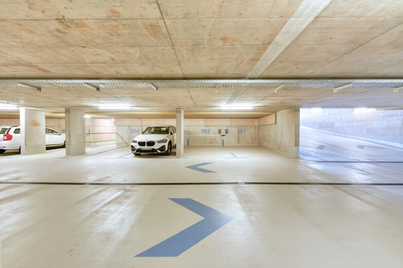 Zur Wohnung gehören ein 4,6 m² großer Abstellraum im Untergeschoss sowie ein Kfz-Stellplatz in der Tiefgarage (mit Wallbox-Vorrichtung), welcher mit 70 EUR monatlich in der Angabe der Kaltmiete bereits enthalten ist.