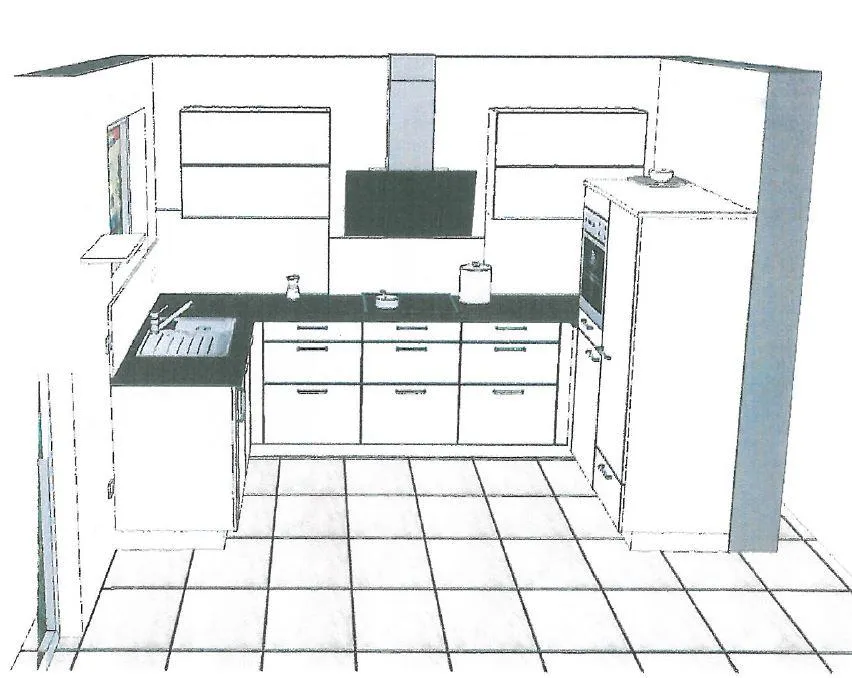 Die Einbauküche wird voraussichtlich im Dezember eingebaut und beinhaltet einen Dunstabzug, eine Spülmaschine, eine Spüle, einen Kühl-/Gefrierschrank, sowie Ober- und Unterschränke. Ein Herd und ein Backofen sind nicht vorhanden.