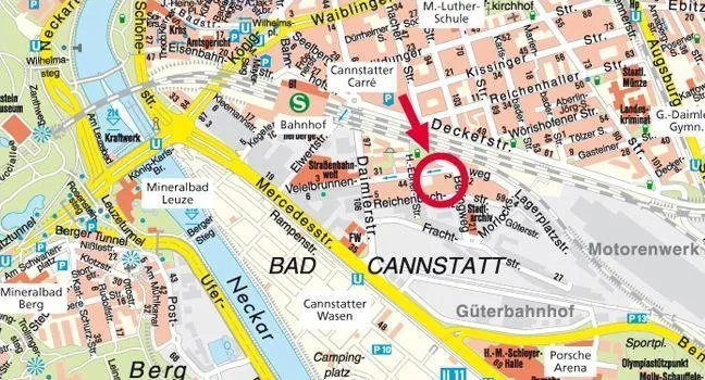 Der Bahnhof von Bad Cannstatt ist bequem zu Fuß erreichbar. Die S-Bahn benötigt zum Stuttgarter Hauptbahnhof 4 Minuten.