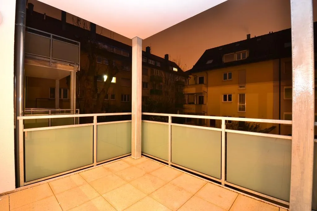 Vom Wohnzimmer ist der überdachte, ca. 6 m² große Süd-West Balkon zugängig.