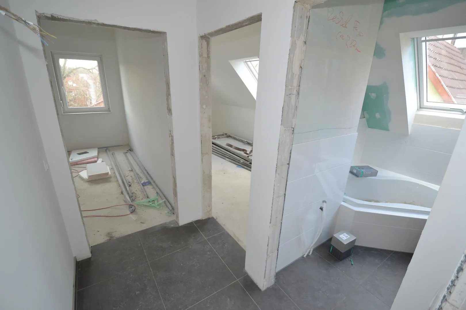 Das Haus wurde im Jahr 2014, freistehend, in massiver Bauweise, 2-geschossig + DG und mit Satteldach erstellt. Der Innenausbau findet aktuell statt.