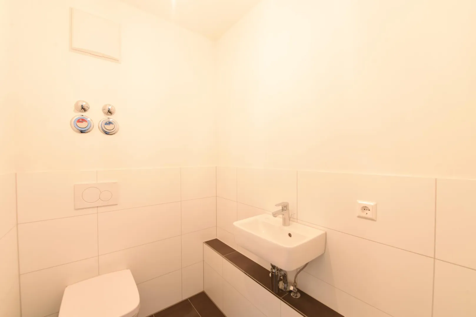 Das separate WC ist ausgestattet mit einem Wandspiegel.