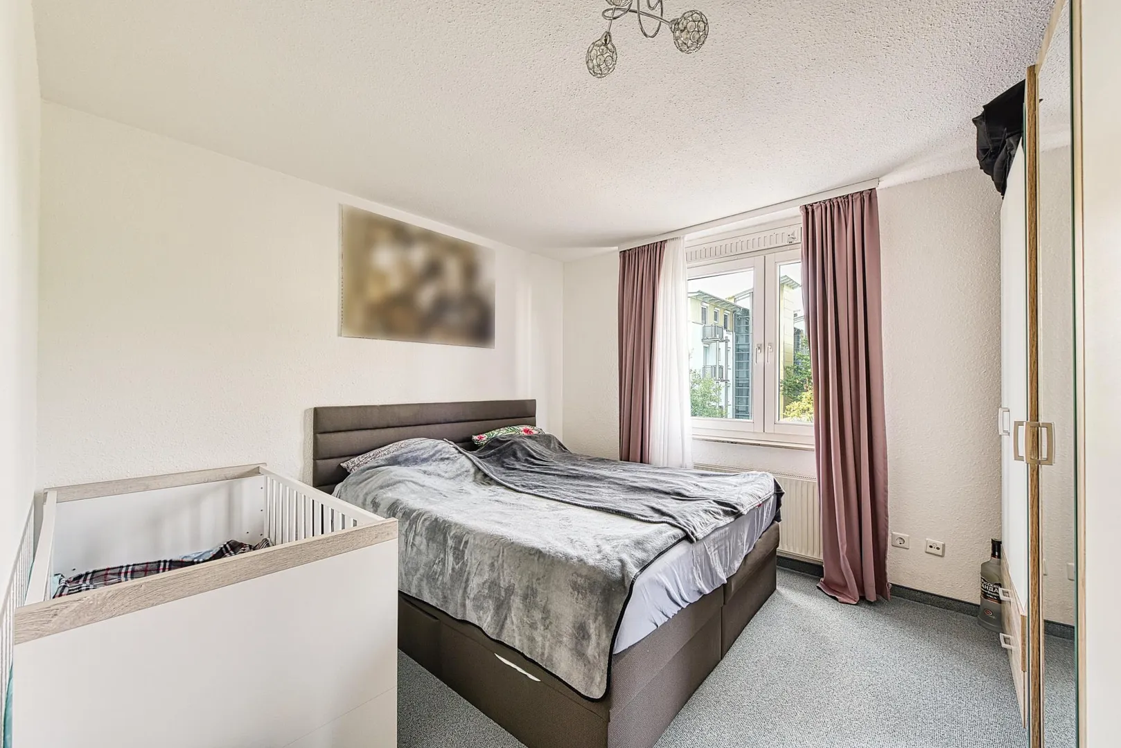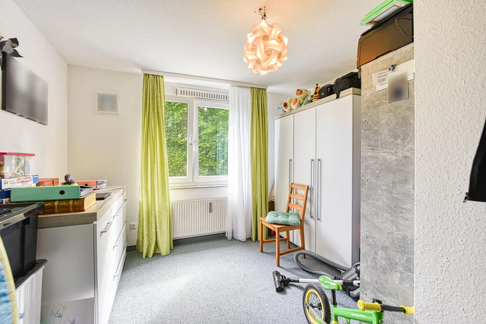 Die Wände sind mit Raufasertapeten tapeziert, weiß gestrichen und befinden sich im gepflegten Zustand. Die Raumhöhen betragen ca. 2,38 Meter.
