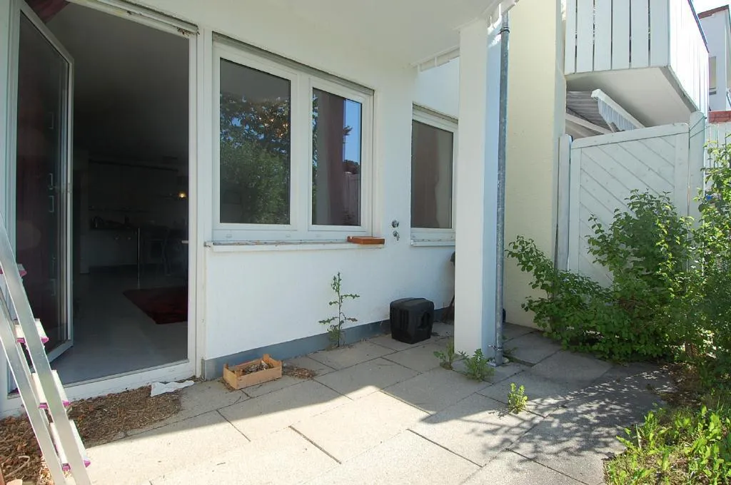 Die Wohnung verfügt über eine ca. 10 m² große und überdachte Süd-Terrasse mit einem ca. 30 m² großen Gartenanteil.