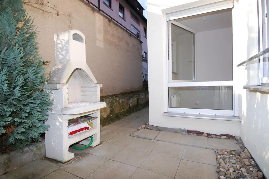 Die Terrasse ist in zwei Bereiche aufgeteilt. Die ca. 10 m² große Ost-Terrasse ist überdacht. Die ca. 6 m² große Süd-Terrasse ist mit einem Steingrill ausgestattet.