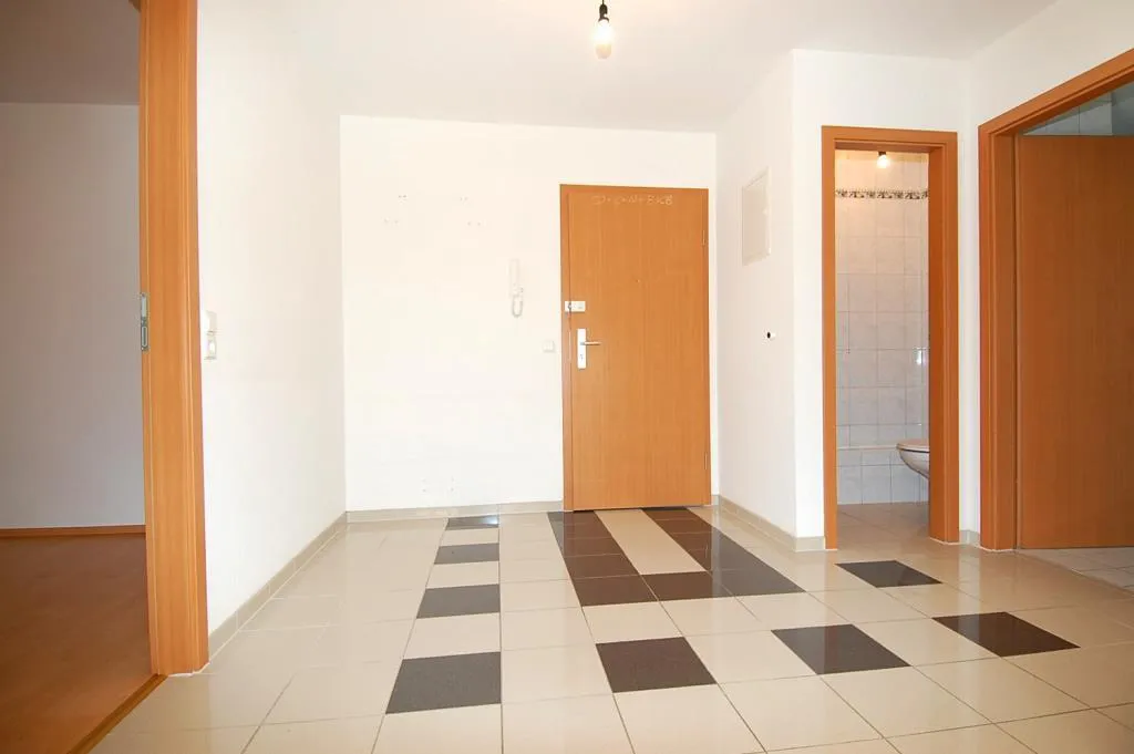 Die Wohnung ist offen gestaltet. Der Eingangsbereich ist offen mit dem Wohn-/Essbereich verbunden.