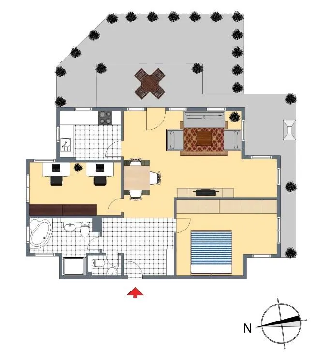 Diese neuwertige und gehoben ausgestattete 3-Zimmer-Terrassen-Wohnung mit Garten befindet sich im Hochparterre (Erdgeschoss) eines freistehenden 8-Familienhauses.