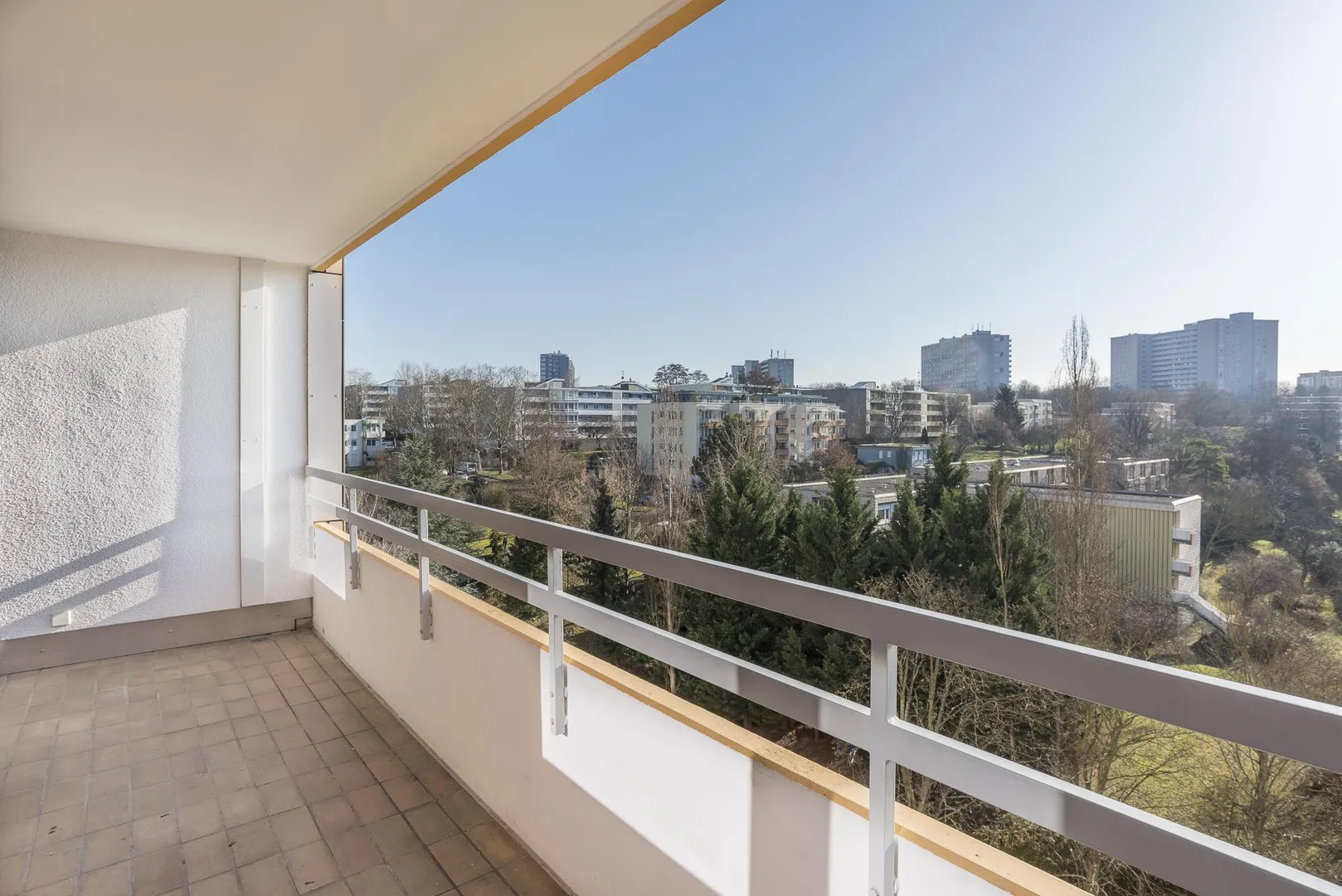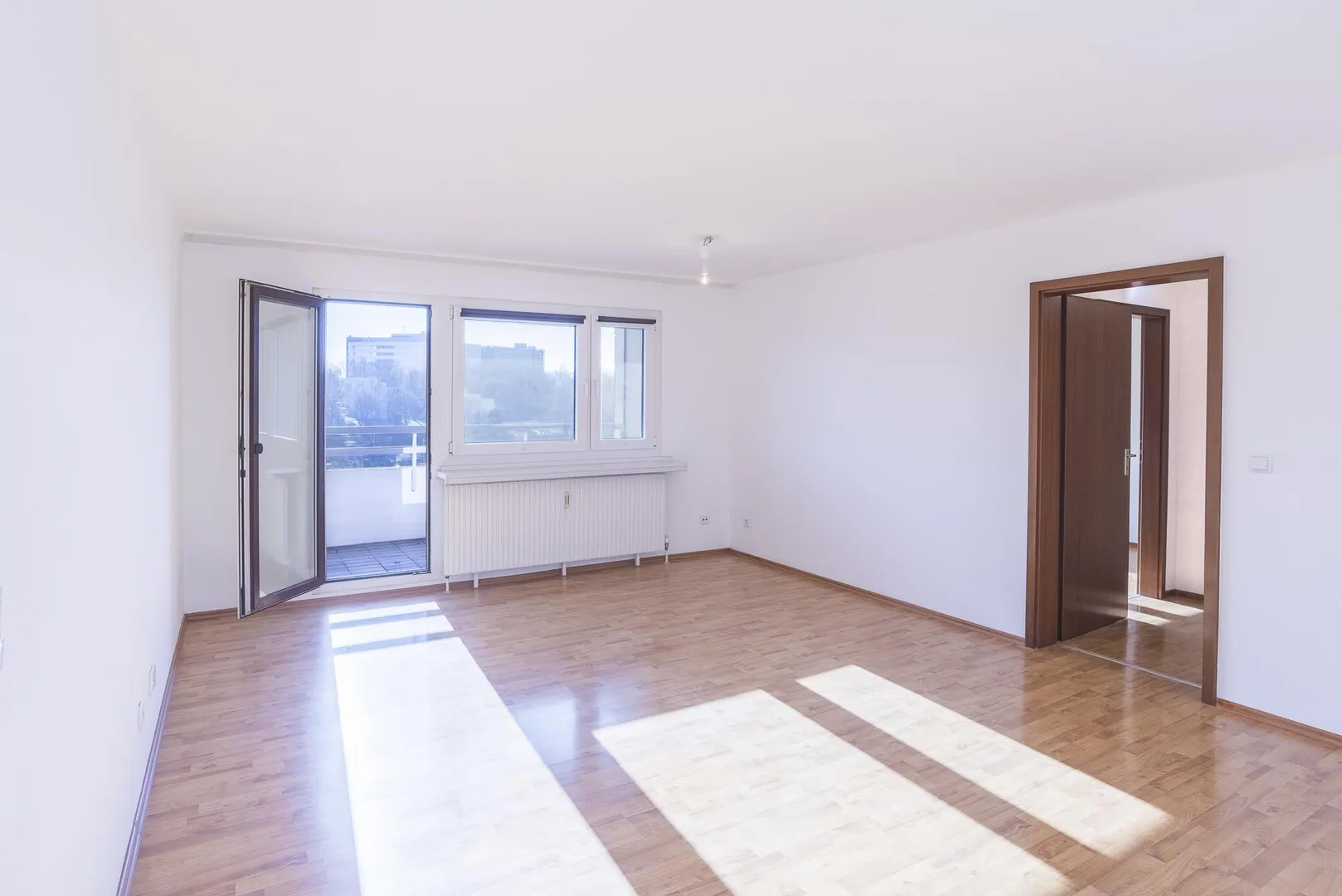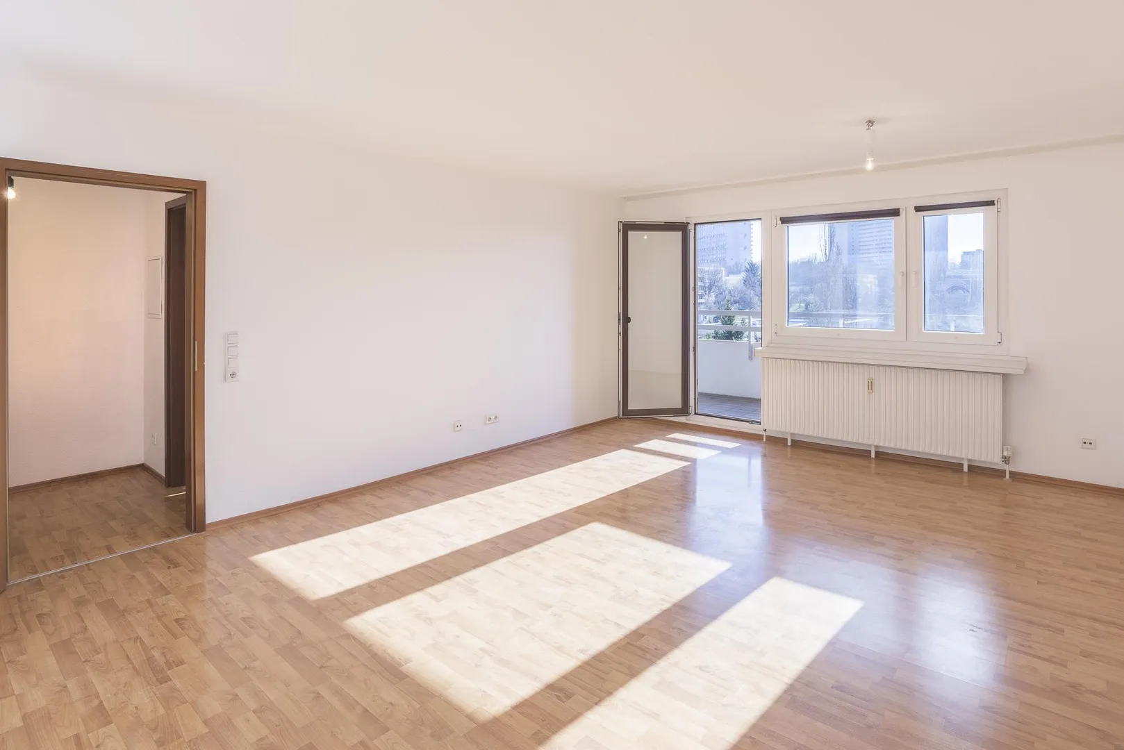 Der überdachte Süd-Balkon ist ca. 8,35 m² groß und ist über das Wohnzimmer begehbar.