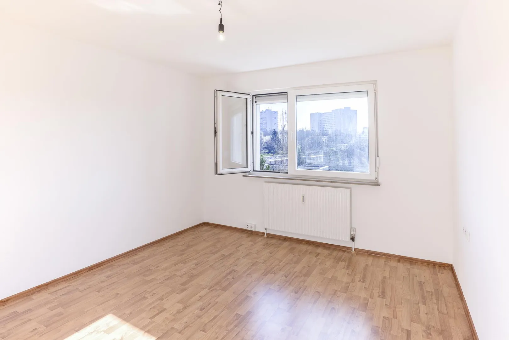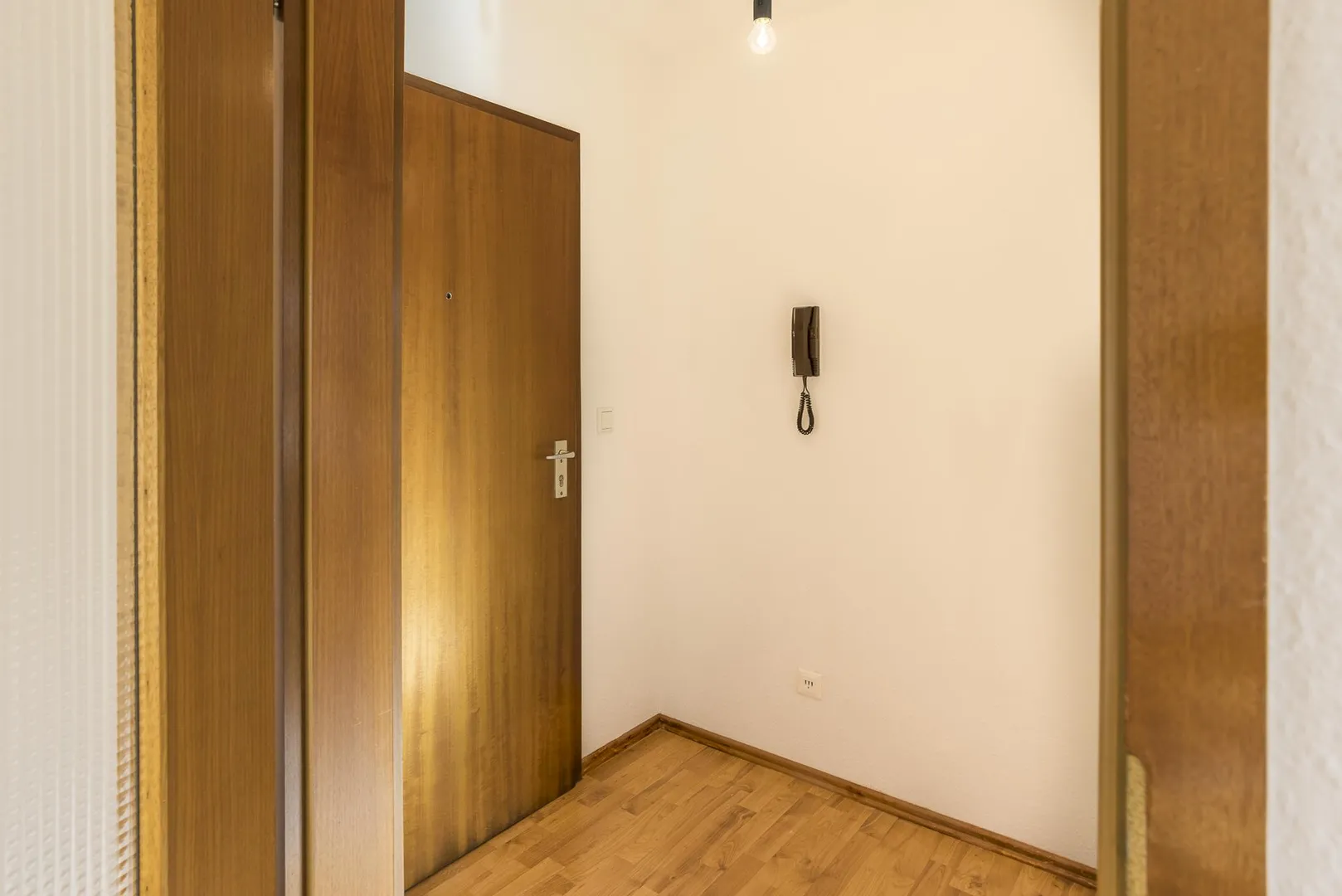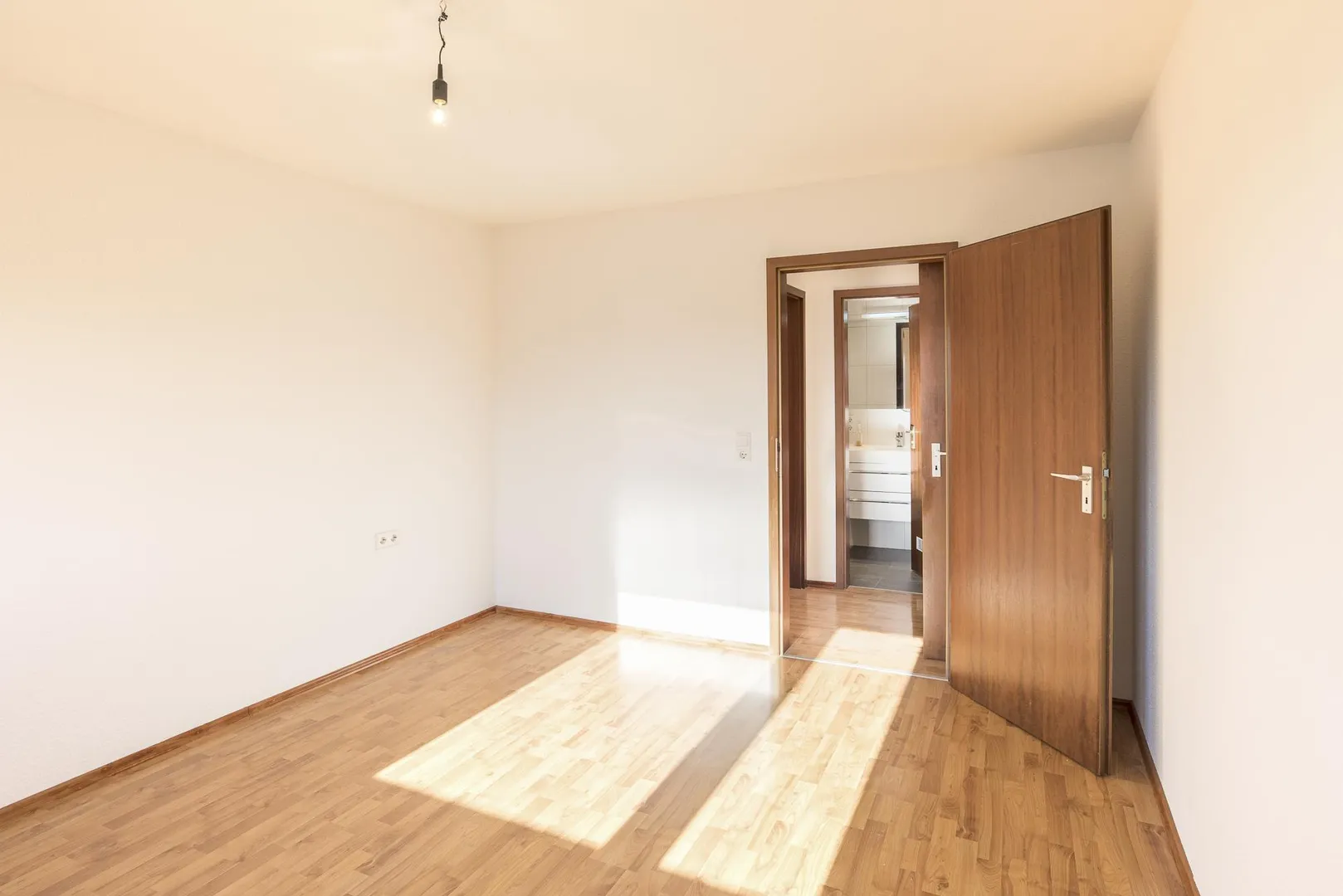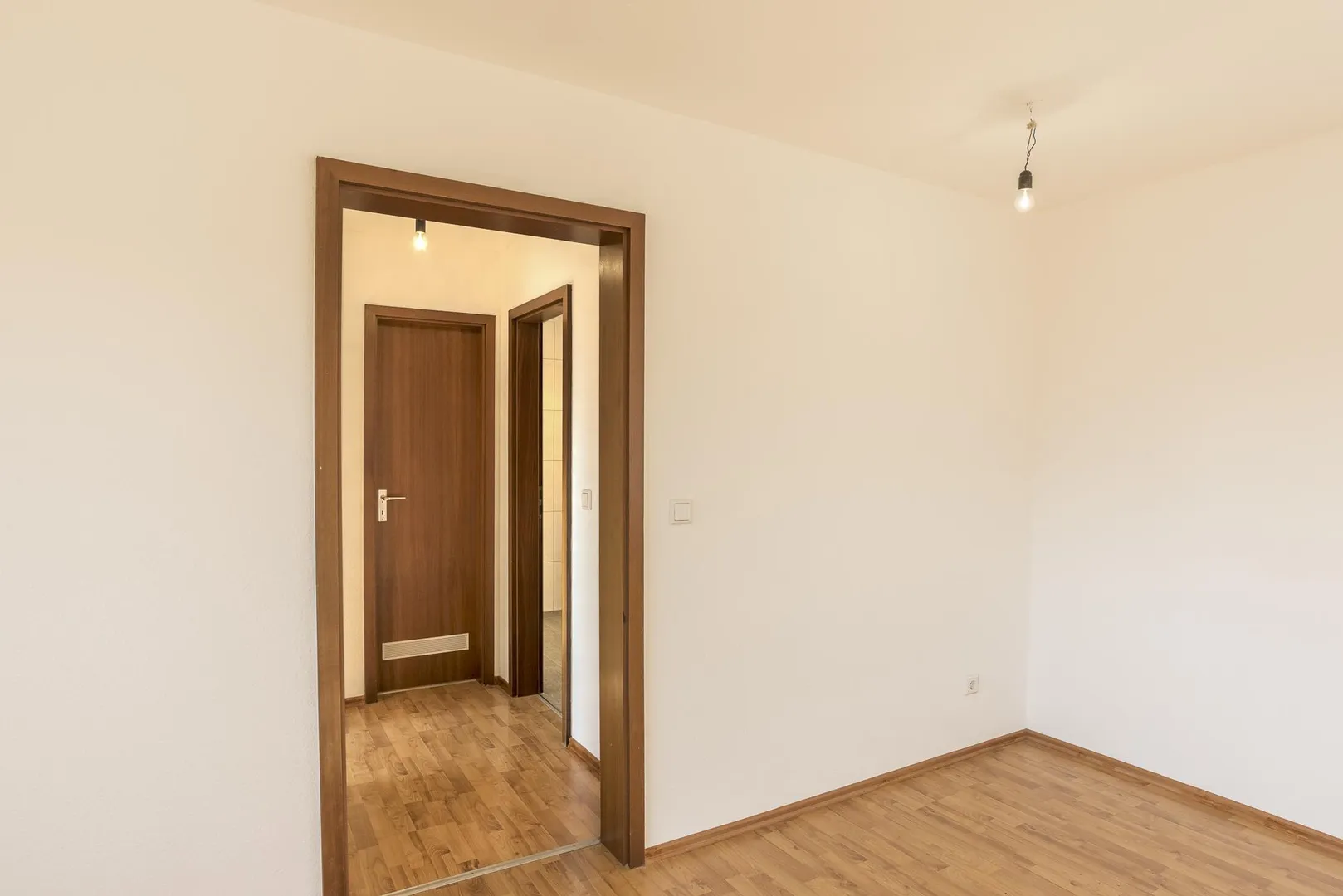 Die Böden in den Zimmern und im Flur sind mit Laminat ausgestattet.