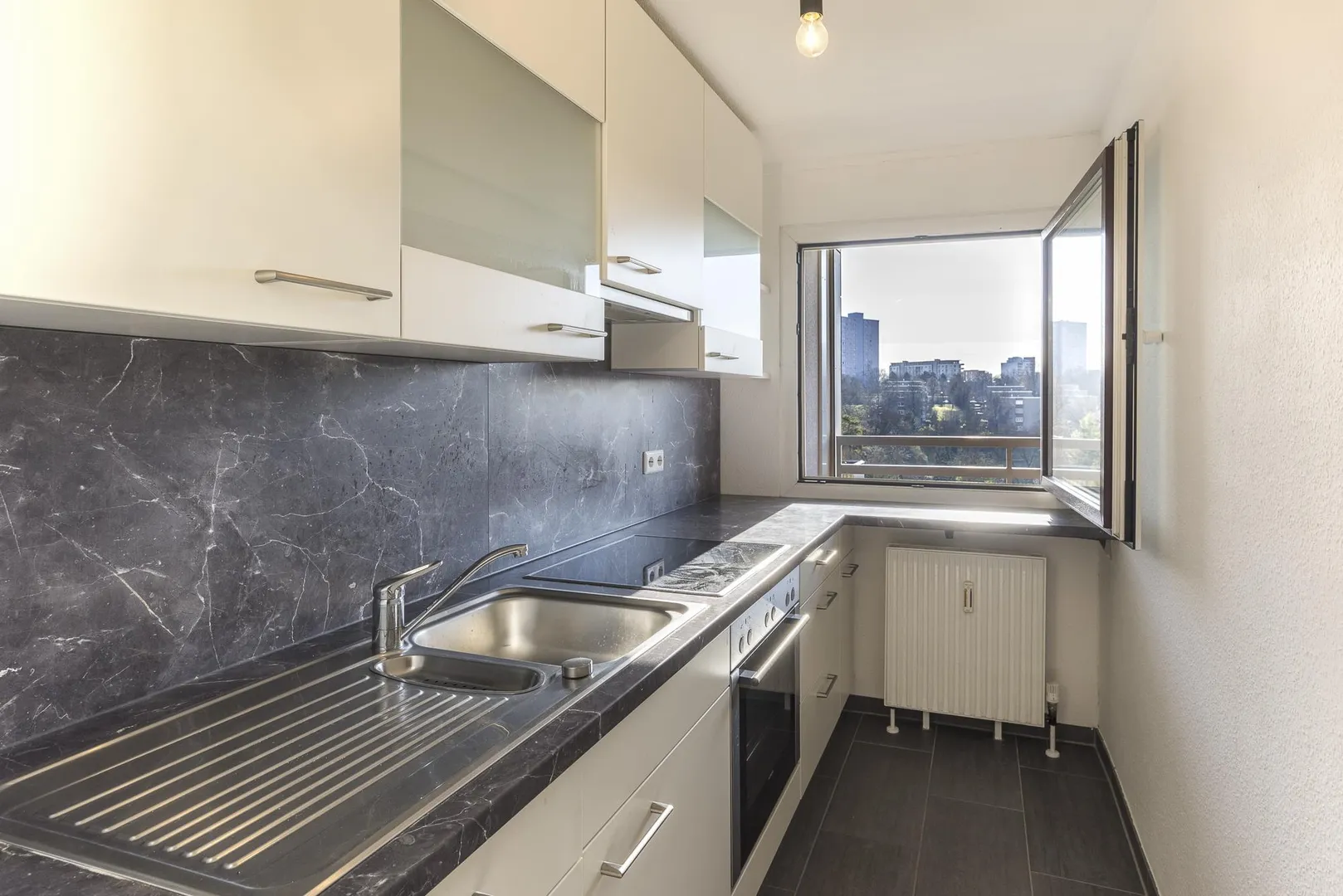 Diese neuwertige und gehoben ausgestattete 2-Zimmer-Wohnung mit Balkon und Fernblick befindet sich im 7. Obergeschoss.