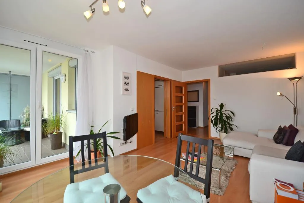 Es ist ausgestattet mit Fernwärme-Zentralheizung, Vollwärmeschutz, Kunststofffenstern mit Rollläden, Solaranlage fürs Warmwasser, Gegensprechanlage mit Videoüberwachung, Kabelanschluß, Aufzug und Tiefgarage.