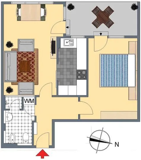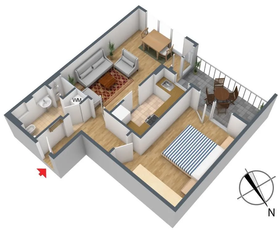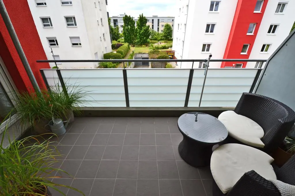 Die Zimmer und der Balkon sind nach Süd-Westen ausgerichtet. Von beiden Zimmern ist der ca. 8 m² große und überdachte Balkon begehbar.