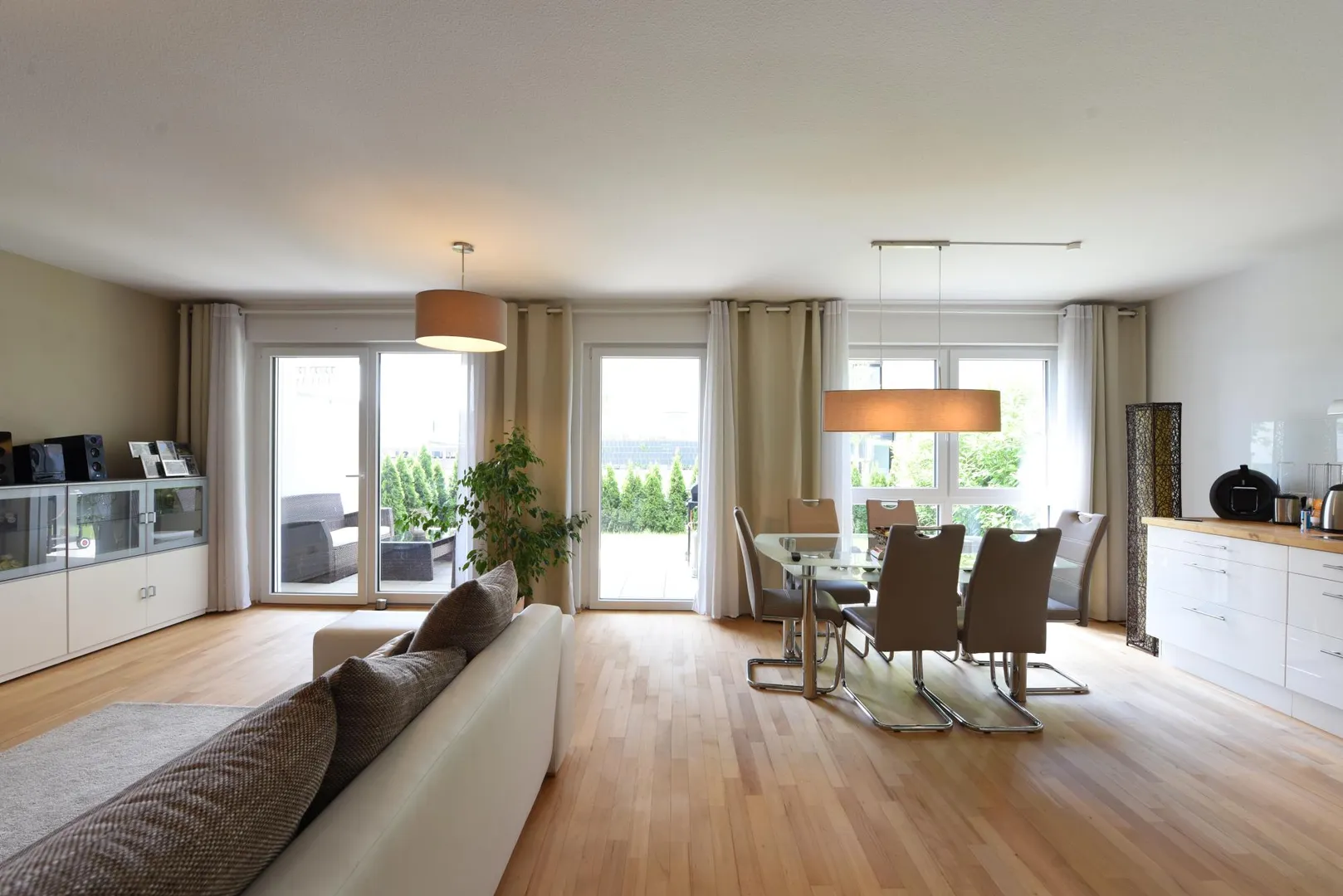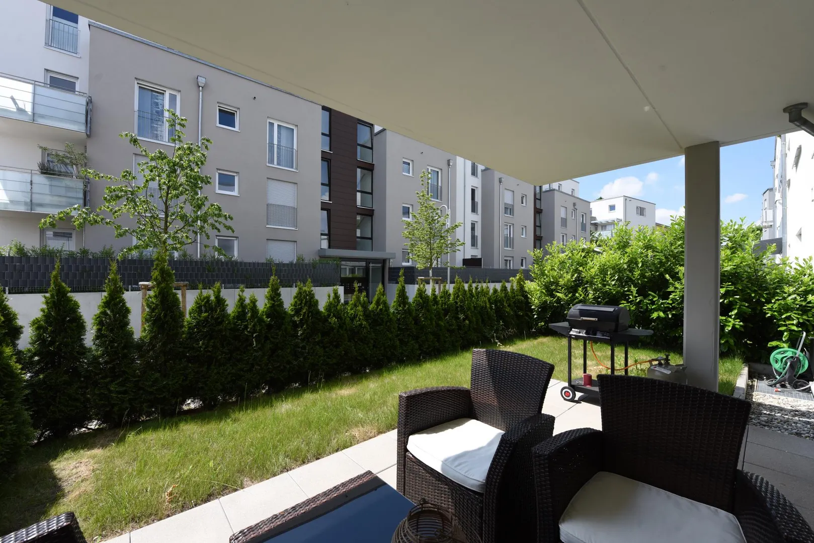 Diese neuwertige und gehoben ausgestattete 3-Zimmer-Wohnung befindet sich im Erdgeschoss mit Terrasse und Gartenanteil.
