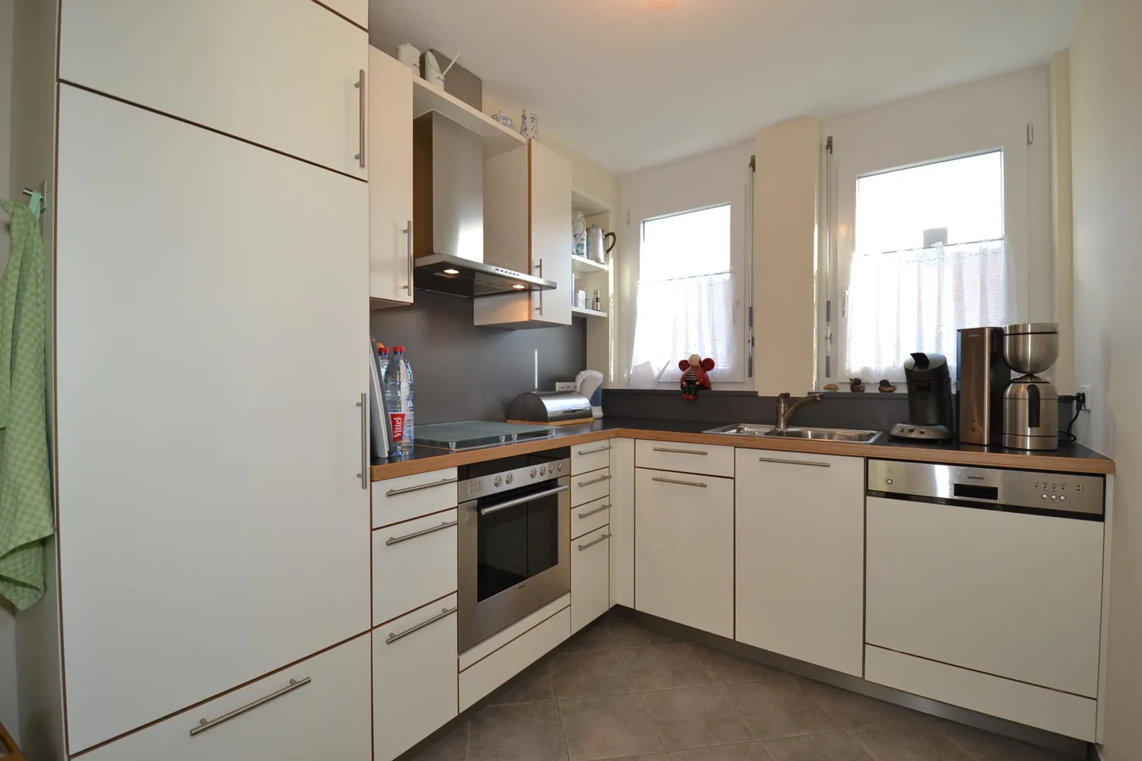 Die Küche ist mit einer Schiebetür und einer Einbauküche ausgestattet. Die Einbauküche ist im Angebotspreis enthalten.