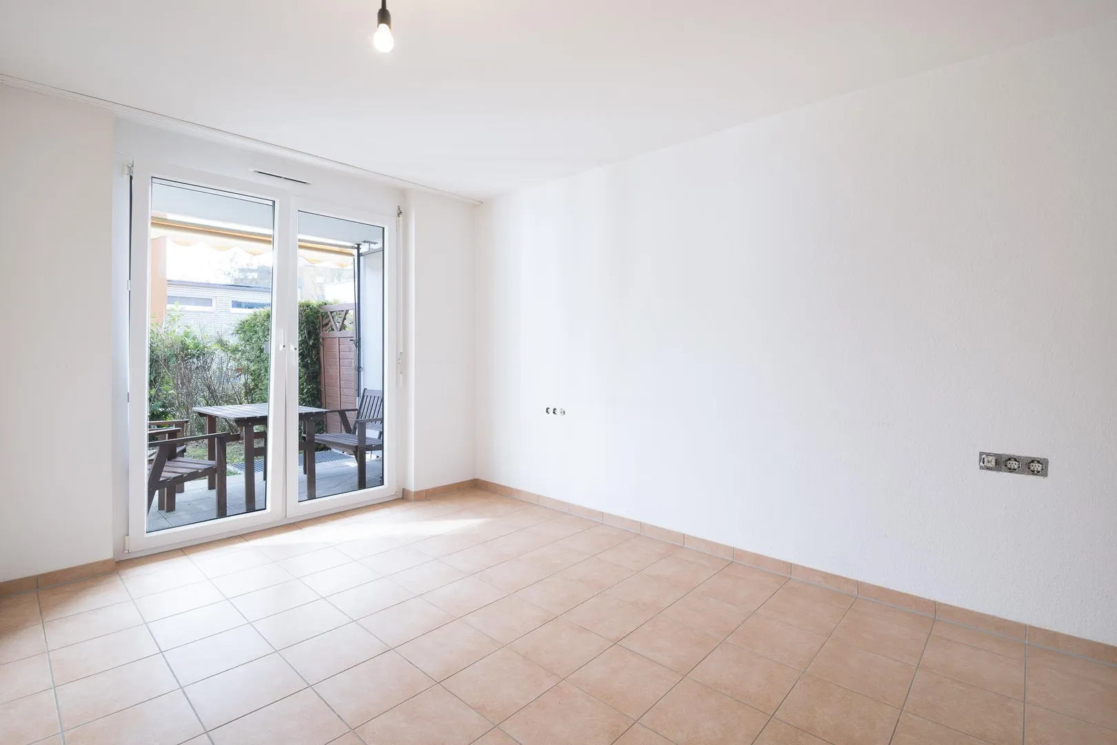 Diese neuwertige, helle und bequeme 2-Zimmer-Wohnung mit Terrasse und Grünfläche, an eine Einzelperson, befindet sich im Erdgeschoss.