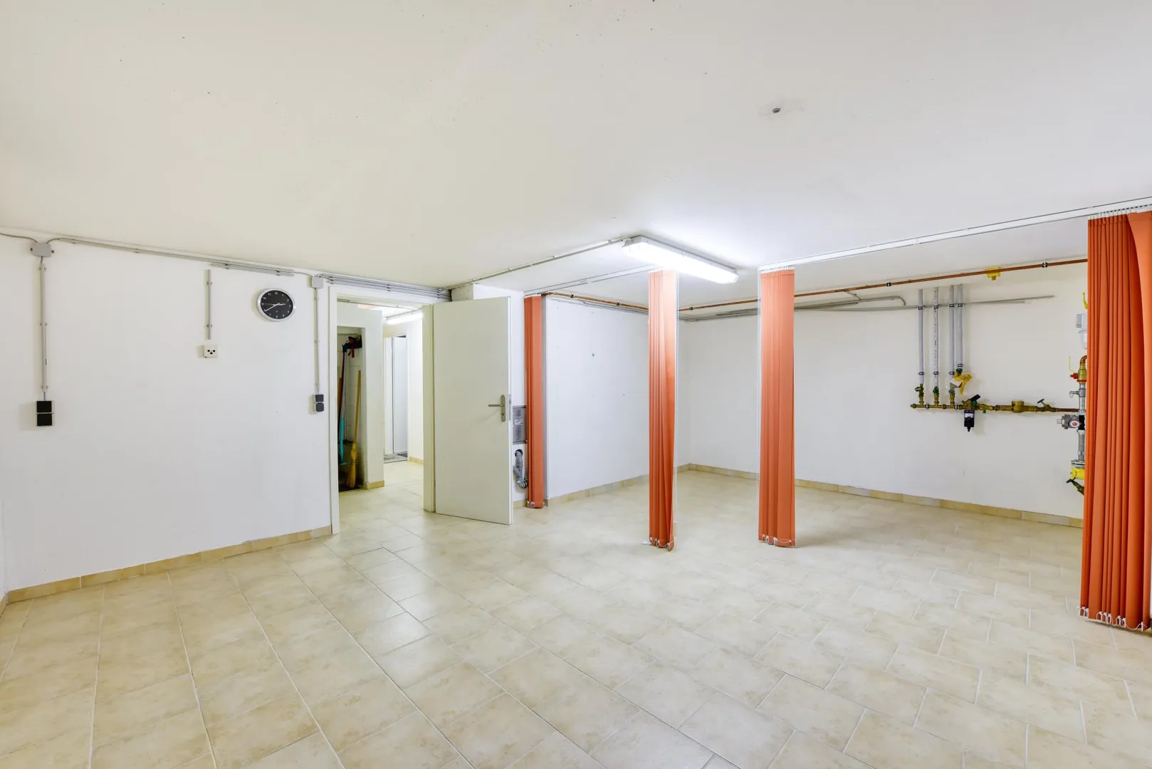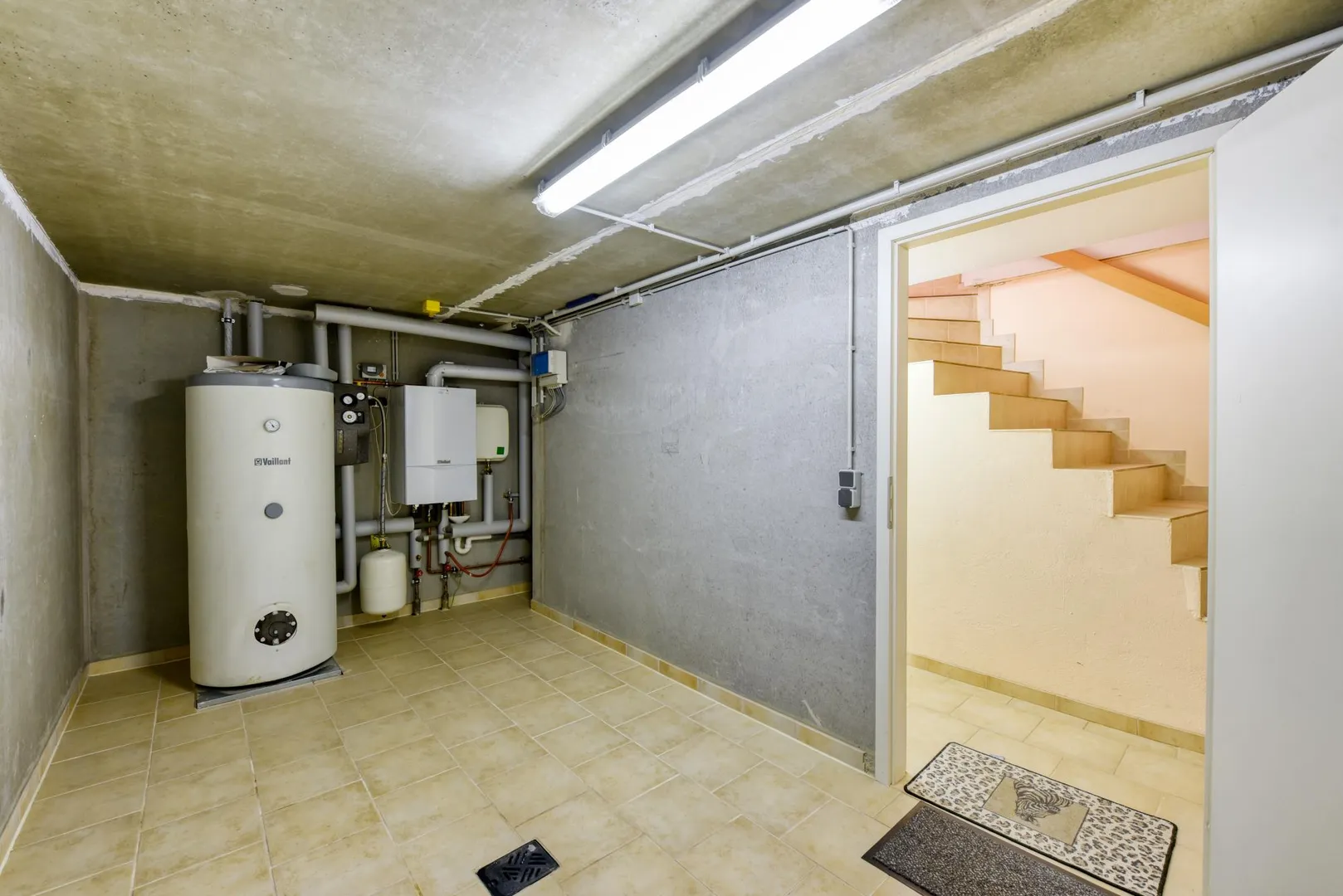 Im Untergeschoss befinden sich der Heiz-/Wasch-/Trockenraum, ein ca. 26 m² großer Hobbyraum mit zwei Heizkörpern sowie ein Abstellraum. Die Böden sind gefliest. Die Raumhöhe beträgt ca. 2,13 Meter.