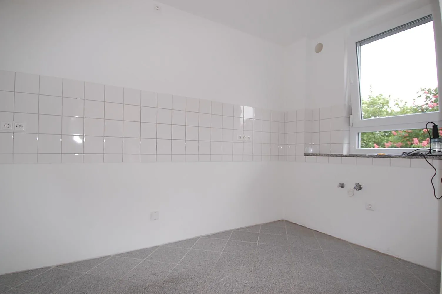 Die komplette Wohnung ist mit hellem Laminat ausgestattet. Das Gäste WC, die Küche und das Badezimmer ist mit hellen Granitsteinen versehen.