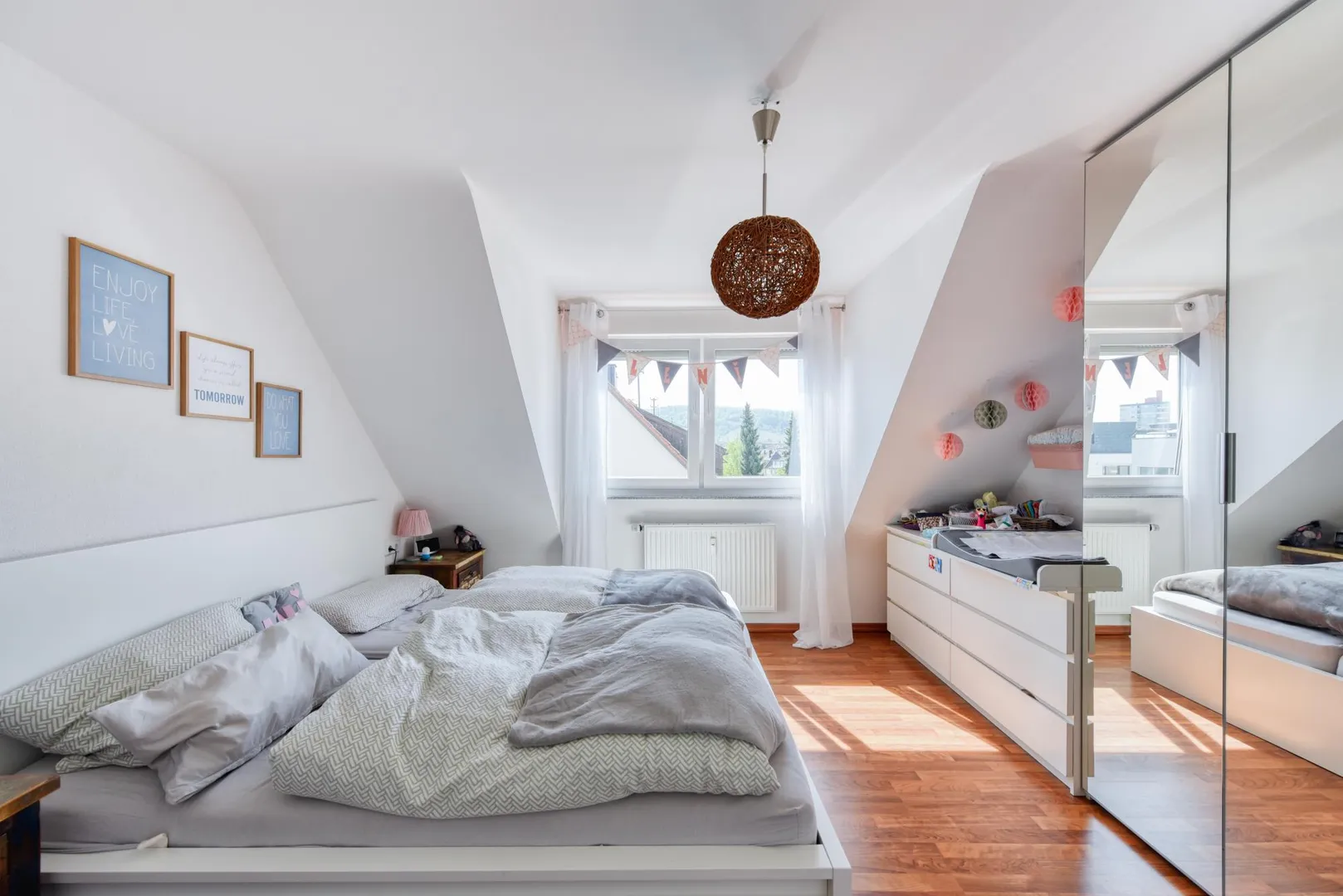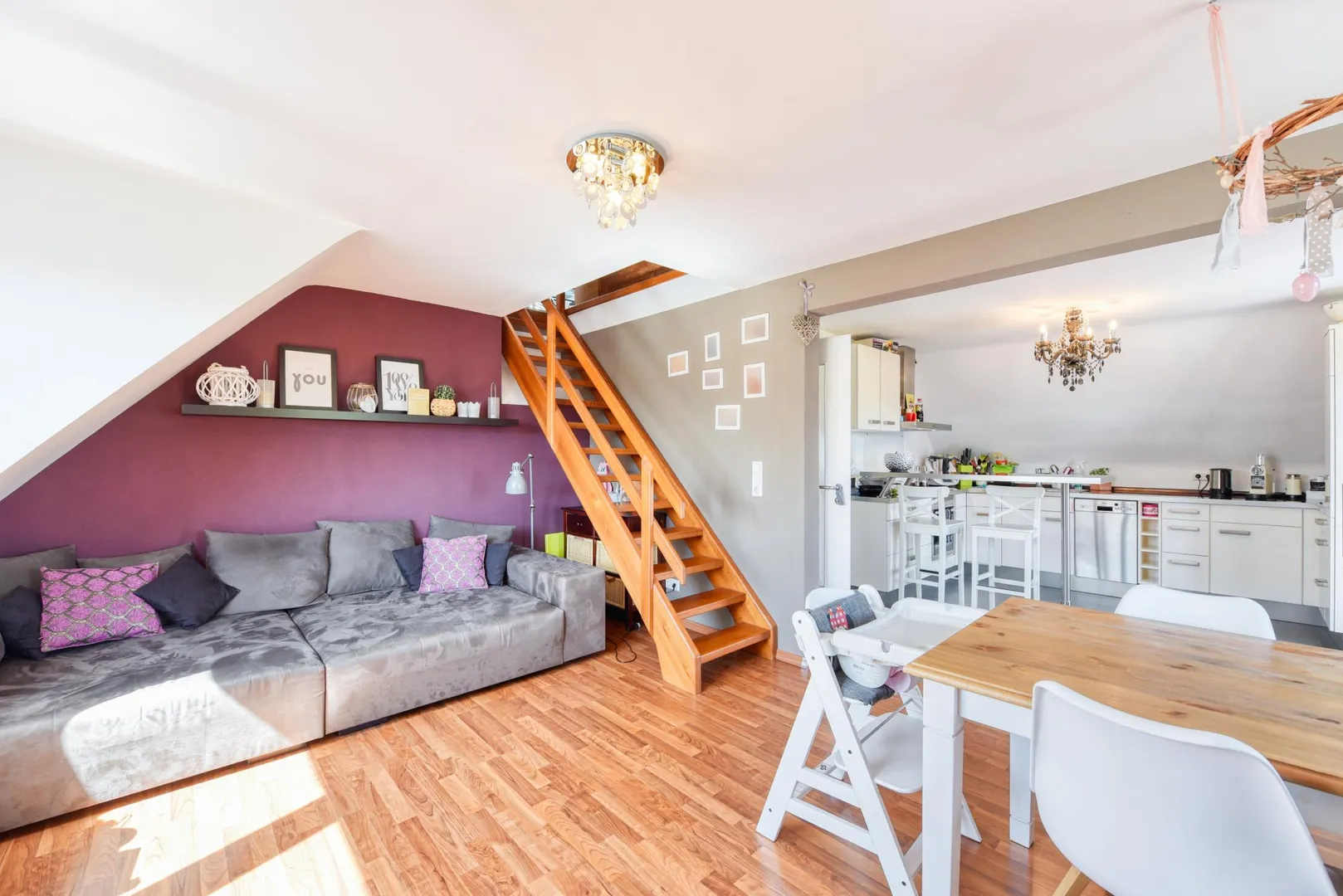 Diese neuwertige 2-Zimmer-Dachgeschoss-Wohnung mit Hobbybereich im Dach-Studio befindet sich im 2.Obergeschoss.