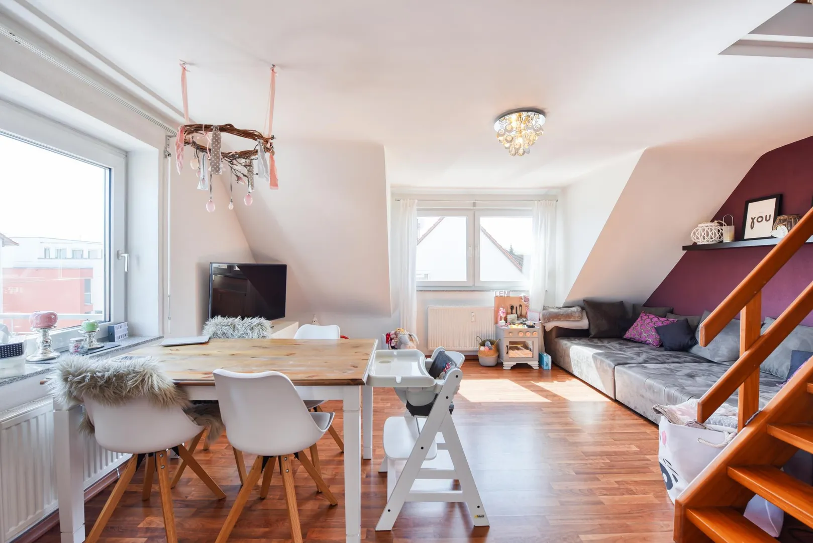Diese neuwertige 2-Zimmer-Dachgeschoss-Wohnung mit Hobbybereich im Dach-Studio befindet sich im 2.Obergeschoss eines 6-Familienhauses.