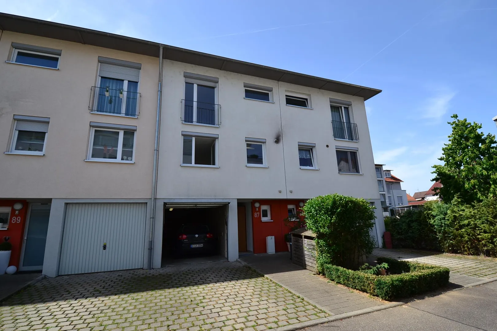 Vor der integrierten Garage gibt es einen Kfz-Außenstellplatz.