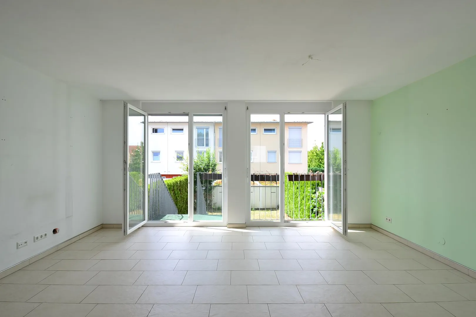Die Böden sind gefliest, die Wände sind verputzt. Die Raumhöhen betragen ca. 2,38 Meter.