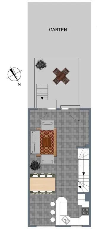 Die Terrasse und der Garten sind nach Süd-West ausgerichtet.