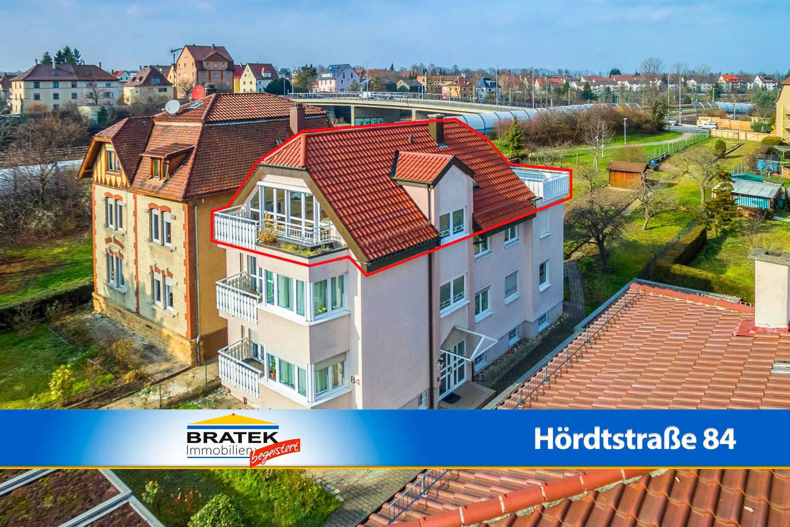 Die Wohnung verfügt über einen ca. 6 m² großen Süd-Balkon, welcher vom Wohnzimmer begehbar ist sowie eine ca. 20 m² große Dach-Terrasse mit Morgens- und Abendssonne, welche vom Schlafzimmer begehbar ist.