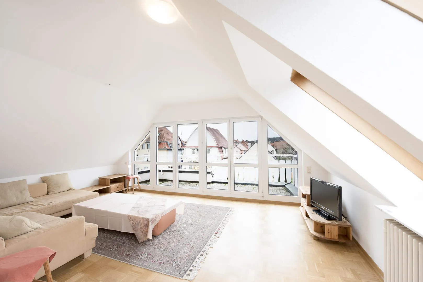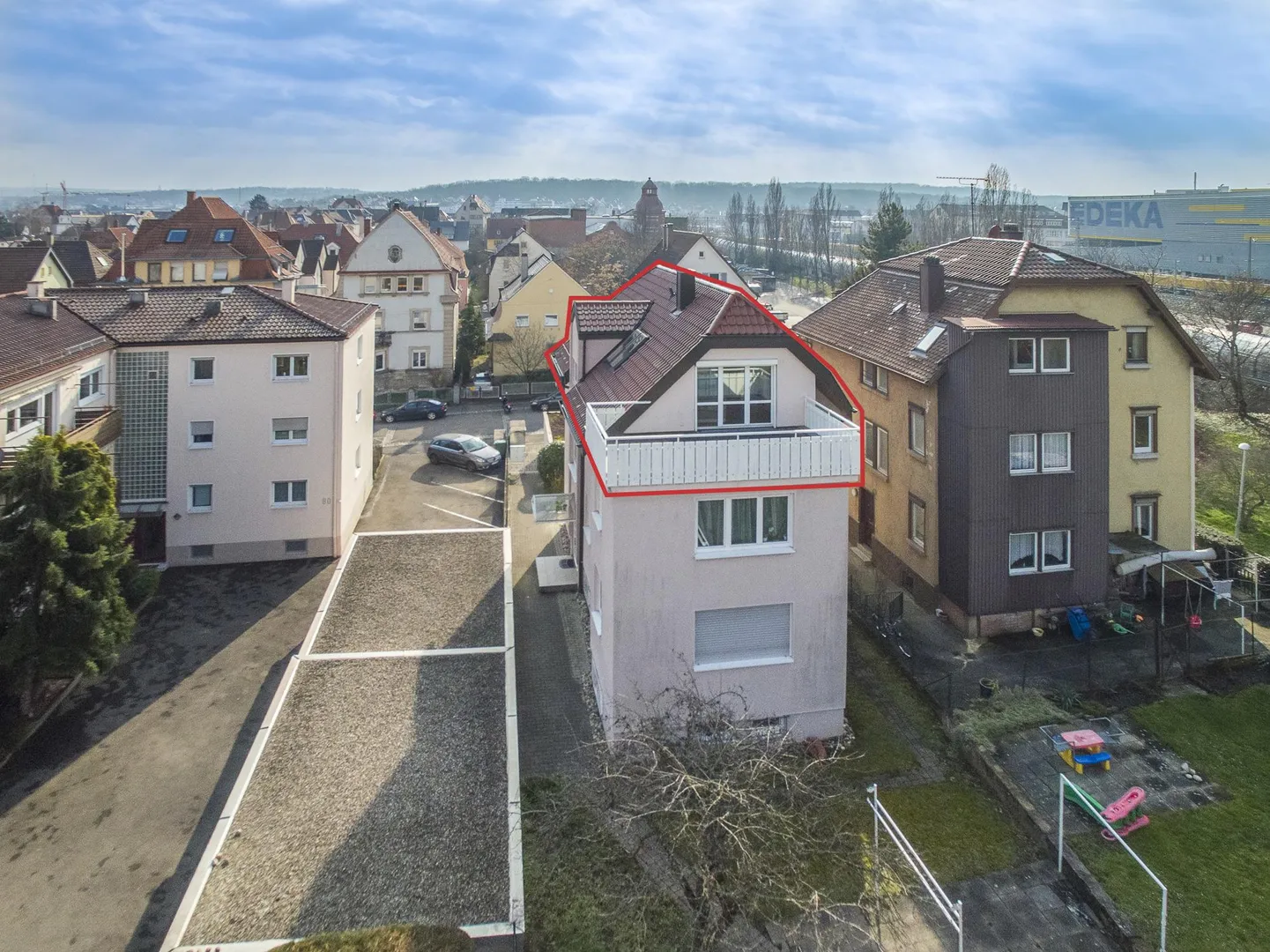 Diese helle & sonnige 2-Zimmer-Dachgeschoss-Etage befindet sich im 2. Obergeschoss eines freistehenden 4-Familienhauses.