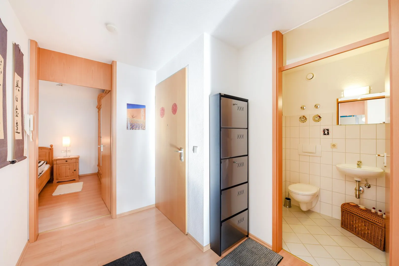Die Wände sind mit Raufasertapete tapeziert und weiß gestrichen. Die Raumhöhen betragen ca. 2,39 Meter.