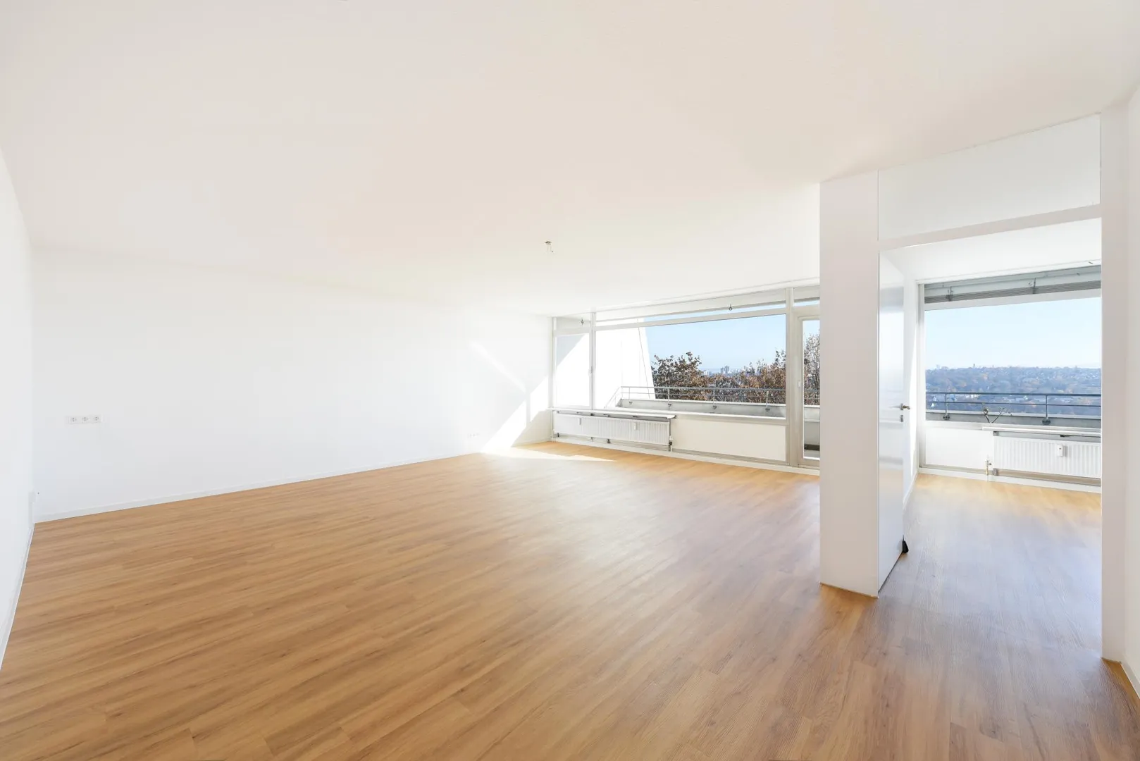 Hier wohnen Sie bequem in Süd/Ost-Ausrichtung mit traumhafter Panoramafernsicht über den Max-Eyth-See und Neckar bis zum Kappelberg sowie in Nord/West-Ausrichtung Richtung Einkaufszentrum-Freiberg.