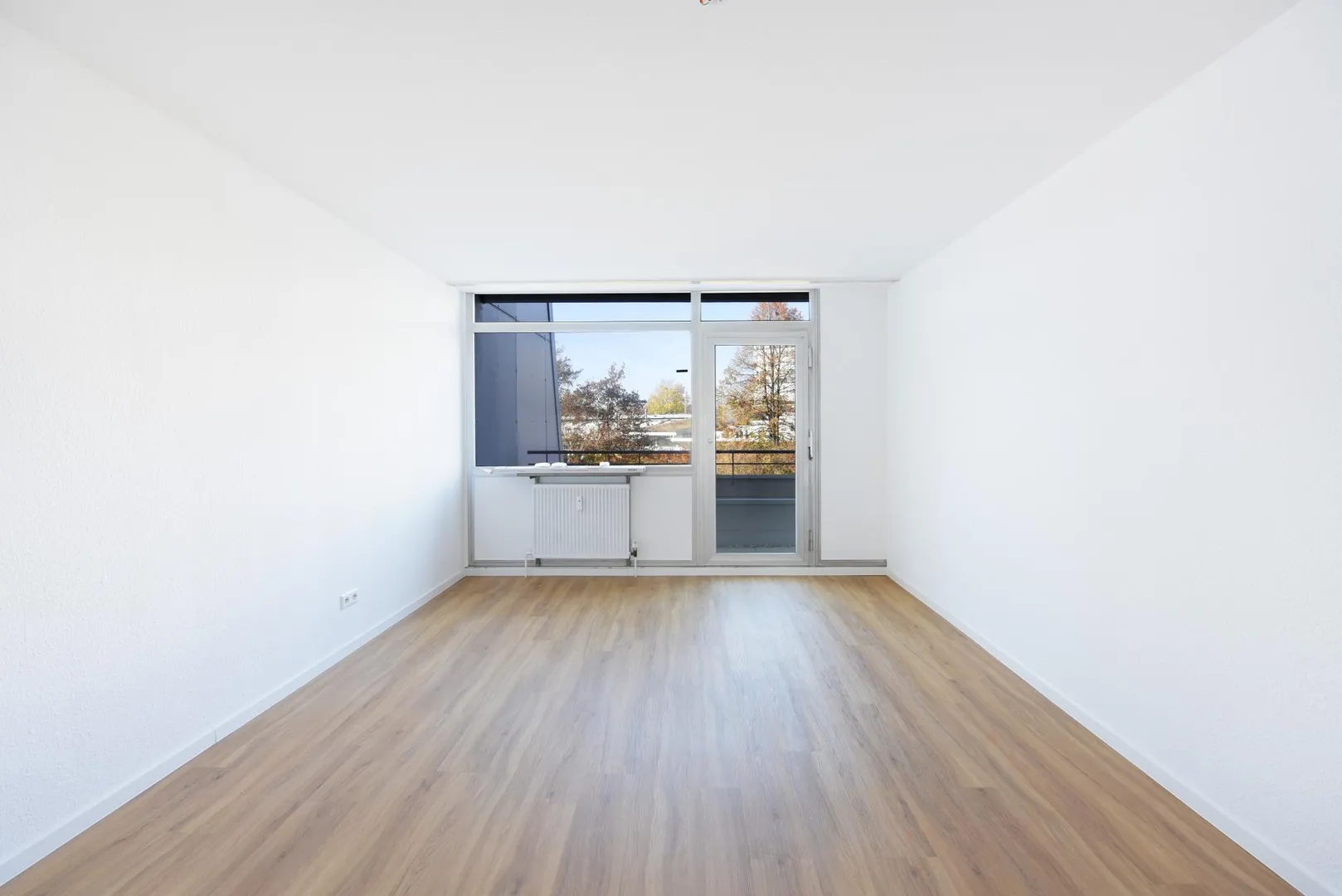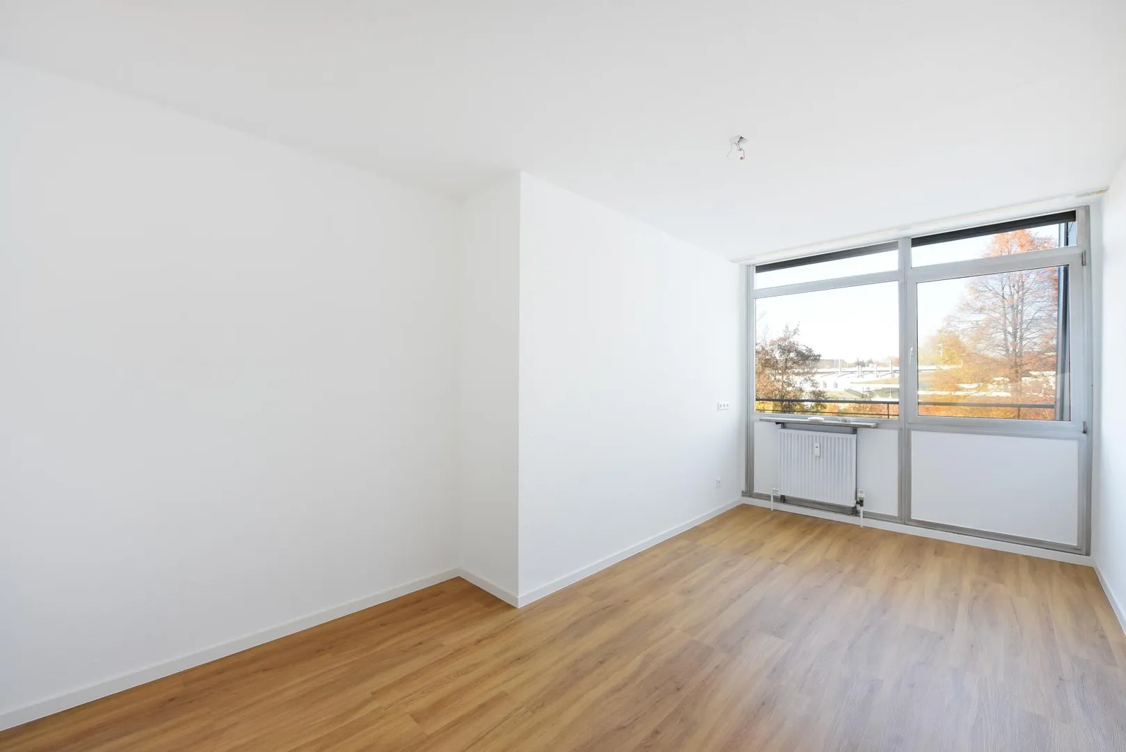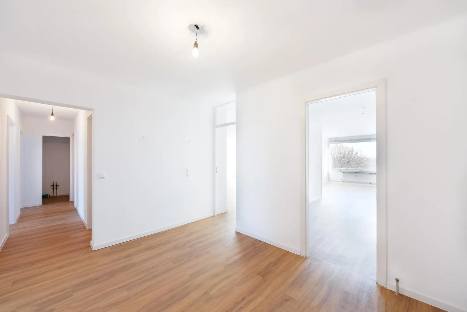 Die Wände wurden frisch mit Raufasertapete tapeziert und weiß gestrichen. Die Raumhöhe beträgt ca. 2,42 Meter.