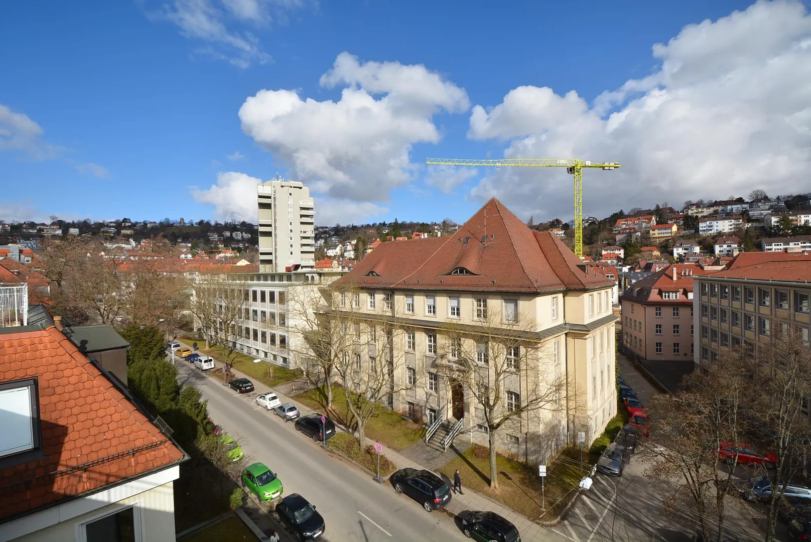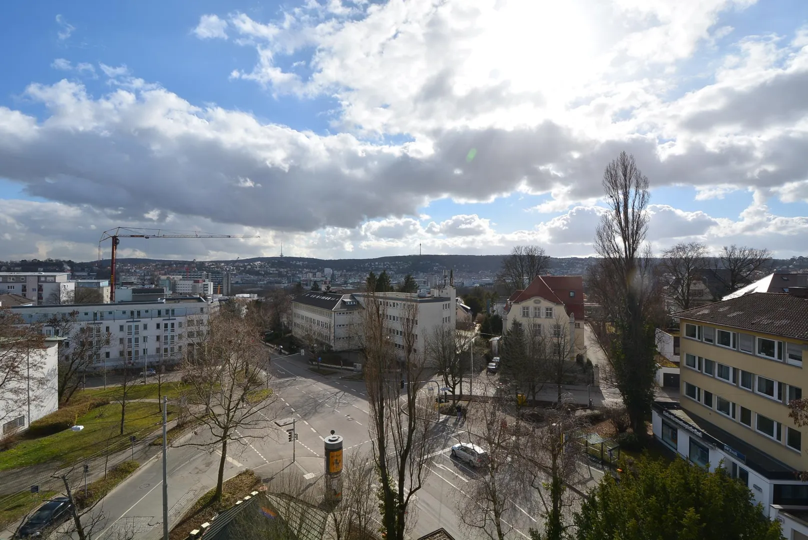 Direkt vor dem Haus befindet sich die Bushaltestelle "Hölderlinstraße", Buslinie 43, welche ca. 6 Minuten nach Stuttgart-Stadtmitte benötigt.
