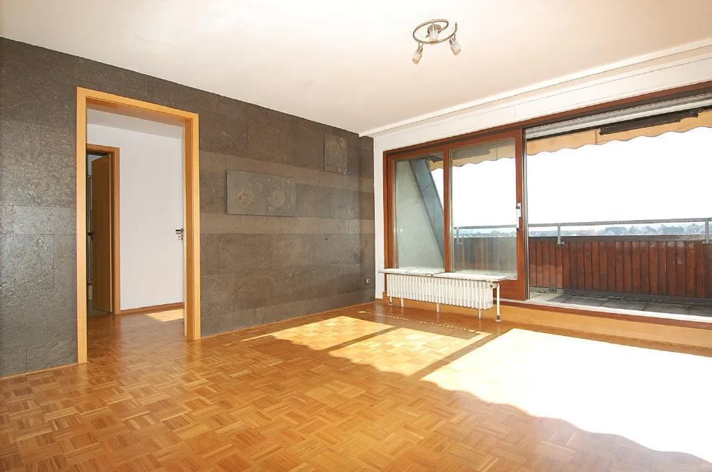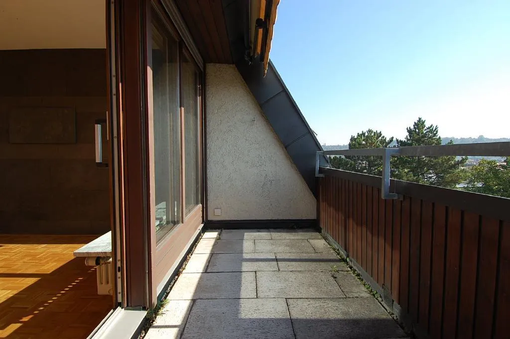 Diese eindrucksvolle 3 Zimmer-Dachgeschoss-Etagen-Wohnung mit sonnigem Süd-Balkon und traumhaftem Weitblick befindet sich im 4. Obergeschoss eines Geschäftshauses.