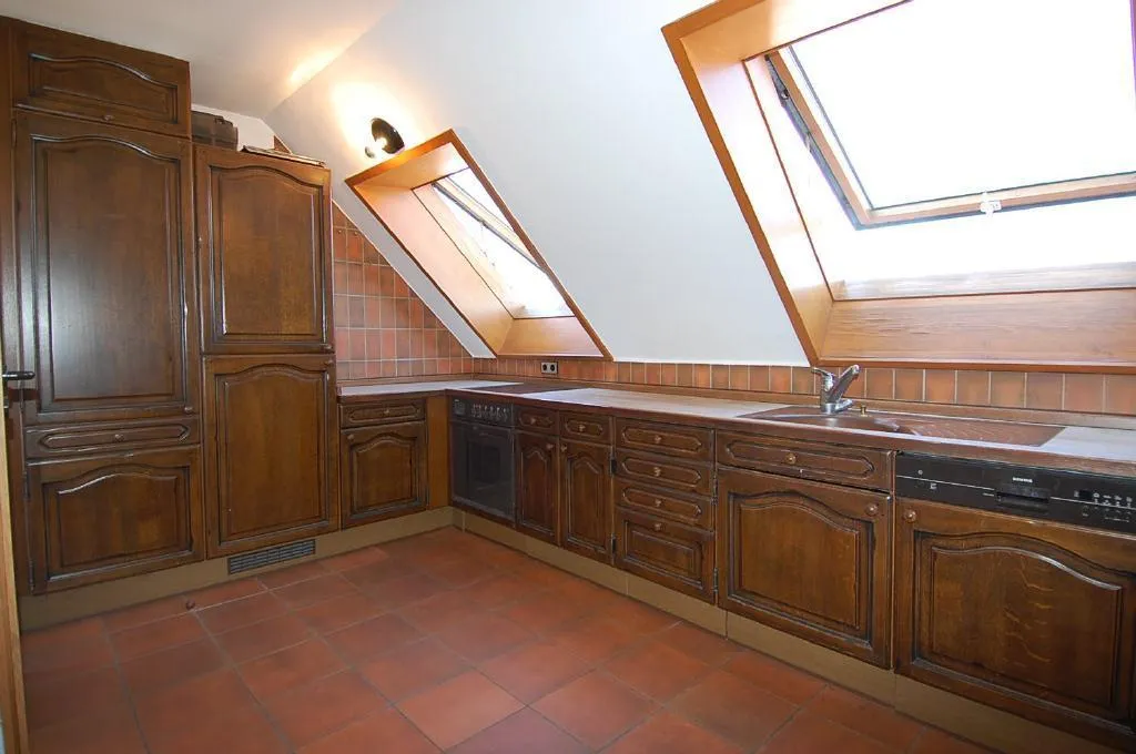 In der großzügig geschnittenen Essküche mit Steinfliesen befindet sich eine ältere Einbauküche, die dem Mieter unentgeltlich überlassen werden kann.