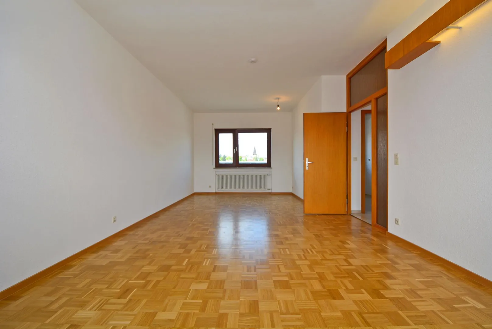Die Wände sind mit Raufasertapete tapeziert und frisch weiß gestrichen. Die Raumhöhen betragen ca. 2,77 Meter.