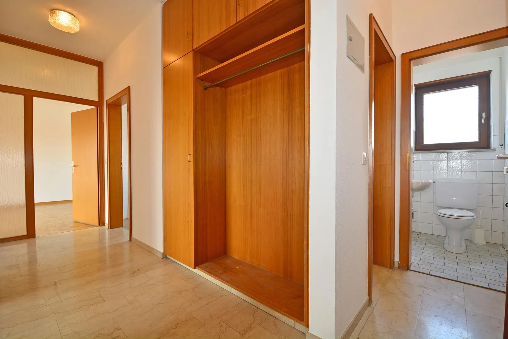 Im Flur befinden sich ein Einbauschrank sowie ein Marmorboden.