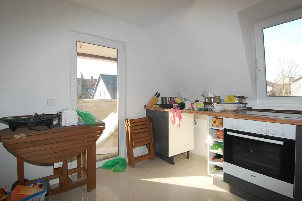 Diese modernisierte 3-Zimmer-Wohnung befindet sich im 2. Obergeschoss (Dachgeschoss mit leichten Schrägen) eines 4-Familienhauses mit einer angebauten Büroeinheit im Erdgeschoss.