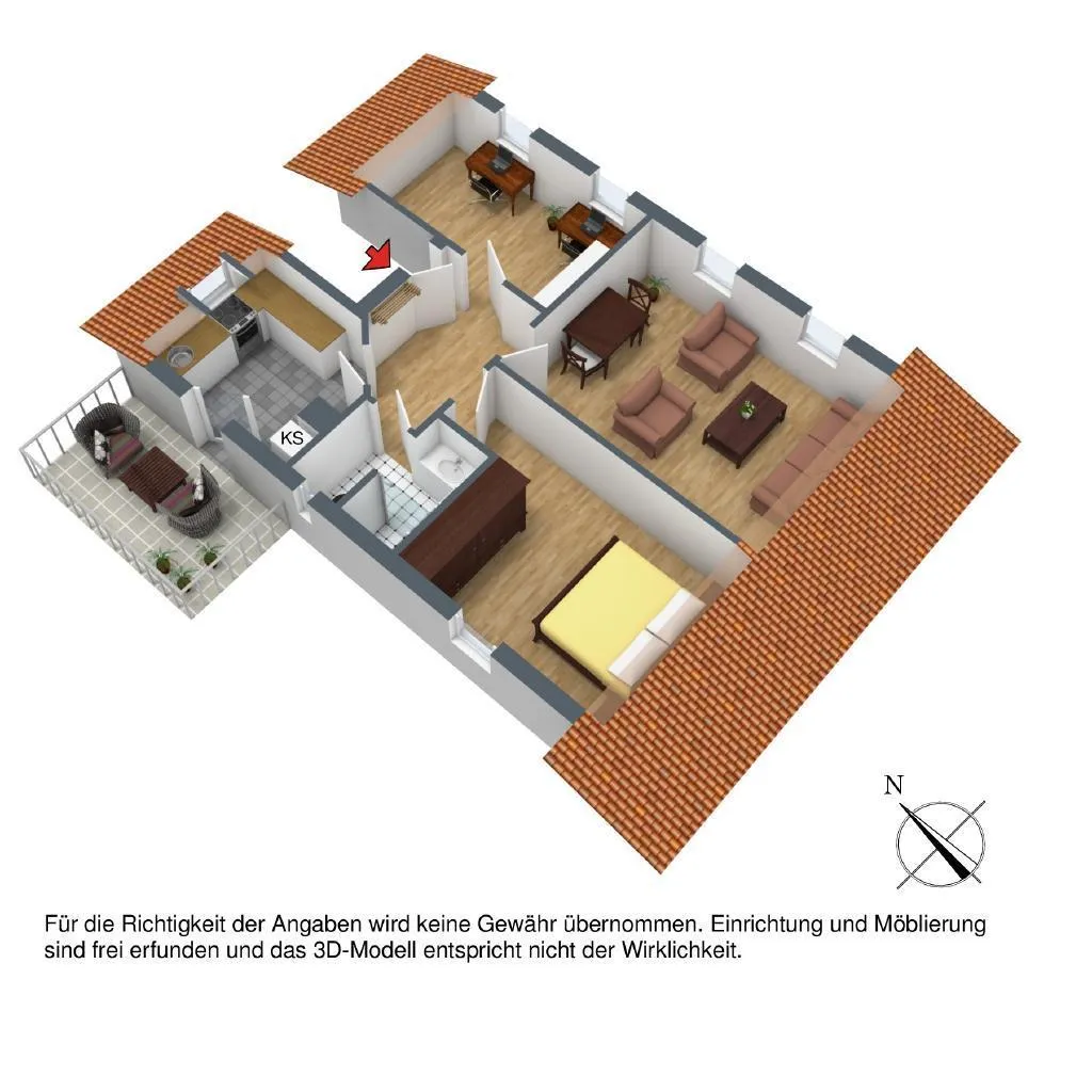 Trotz sorgfältiger Prüfung der im Exposé gemachten Angaben, können wir für die Richtigkeit und Vollständigkeit der Angaben keine Haftung übernehmen. Bitte beachten Sie, dass die Immobilie auf den Bildern größer wirkt als sie in der Realität ist.